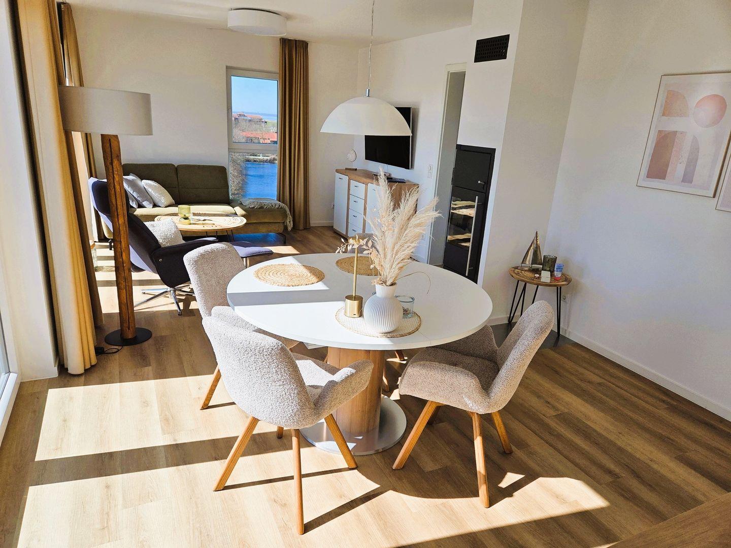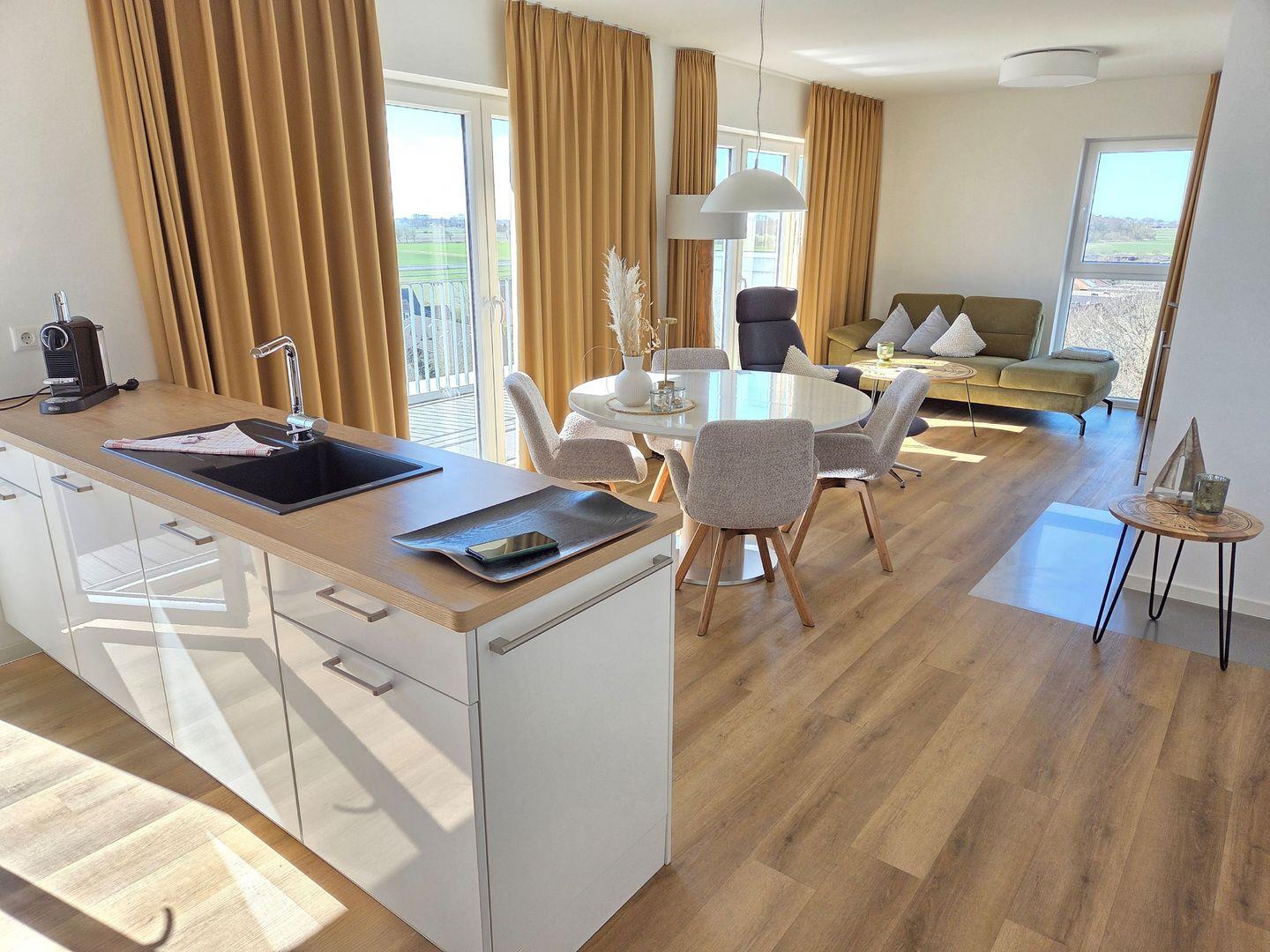 Moderne, hochwertige Ferienwohnung, Sauna, Kamin, großer Balkon, strandnah