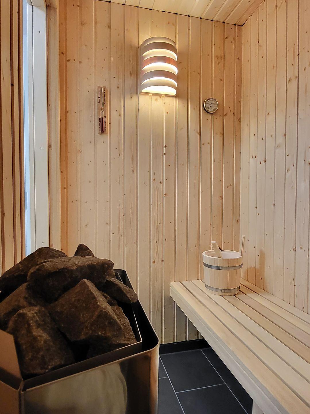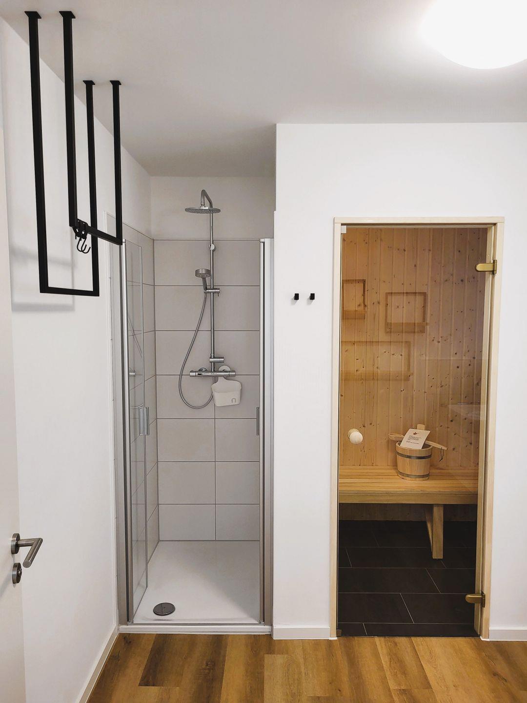 Eine Sauna und eine Regendusche bieten den nötigen Komfort zur Erholung.