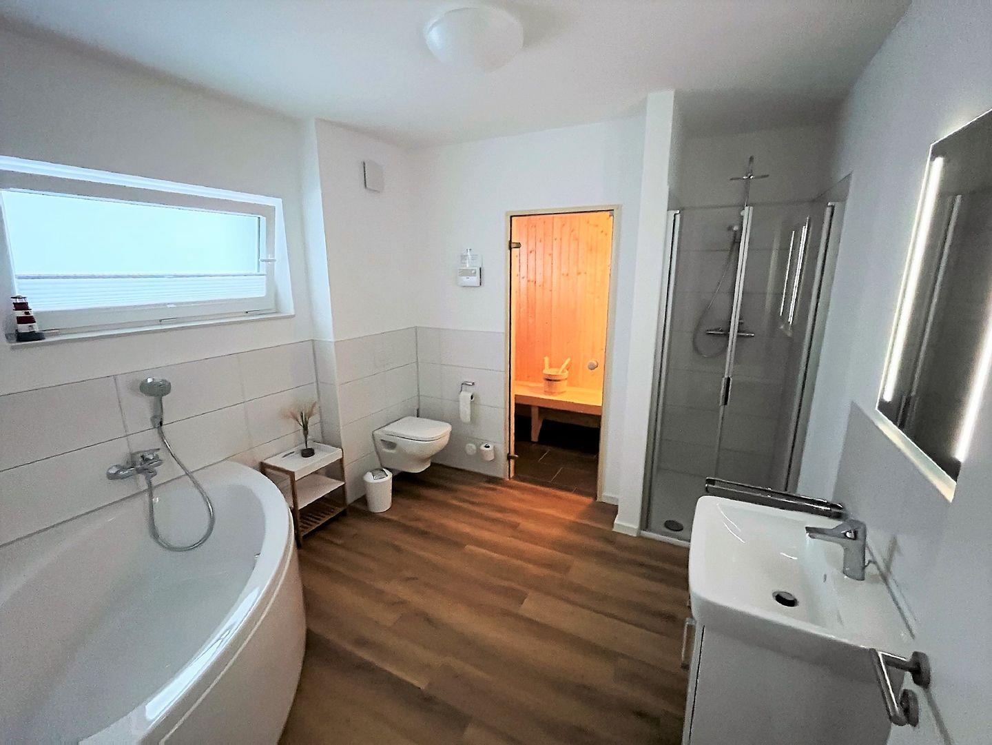 An stürmischen und/oder regnerischen Tagen kann das Badezimmer mit eigener Sauna und seiner Vollausstattung schnell zum Wellnesstempel werden.