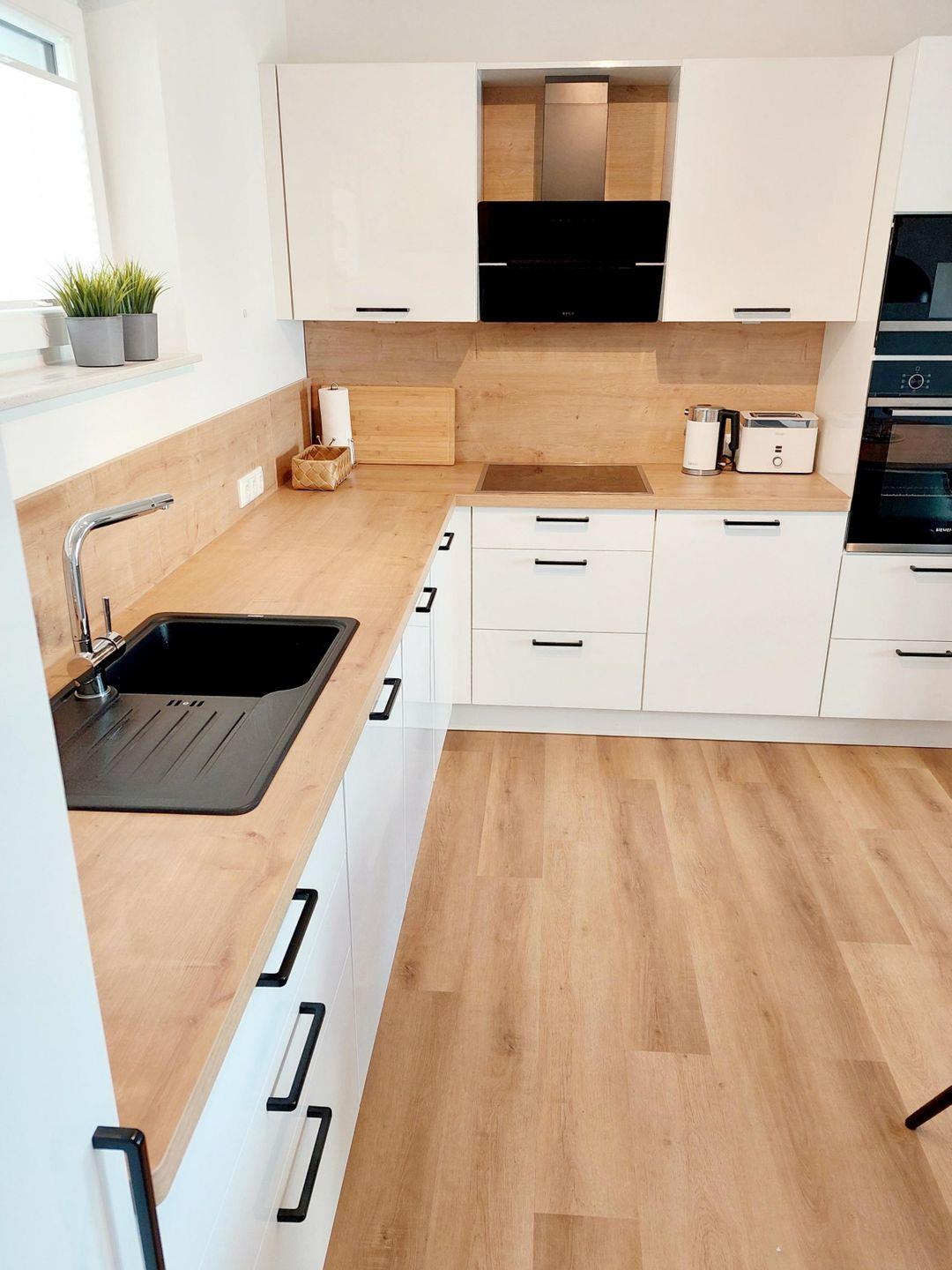 Der Küchenbereich ist modern und offen zum Wohn-Essbereich gehalten und mit einer hochwertigen Einbauküche ausgestattet.