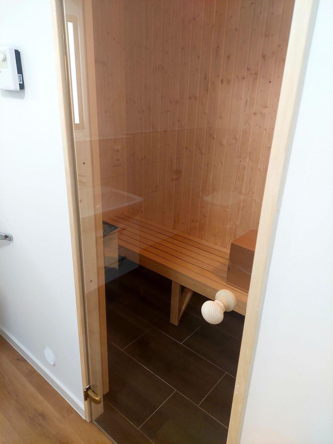 Eine Sauna, eine Regendusche und eine Badewanne bieten den nötigen Komfort zur Erholung. (Ein Föhn ist vorhanden)