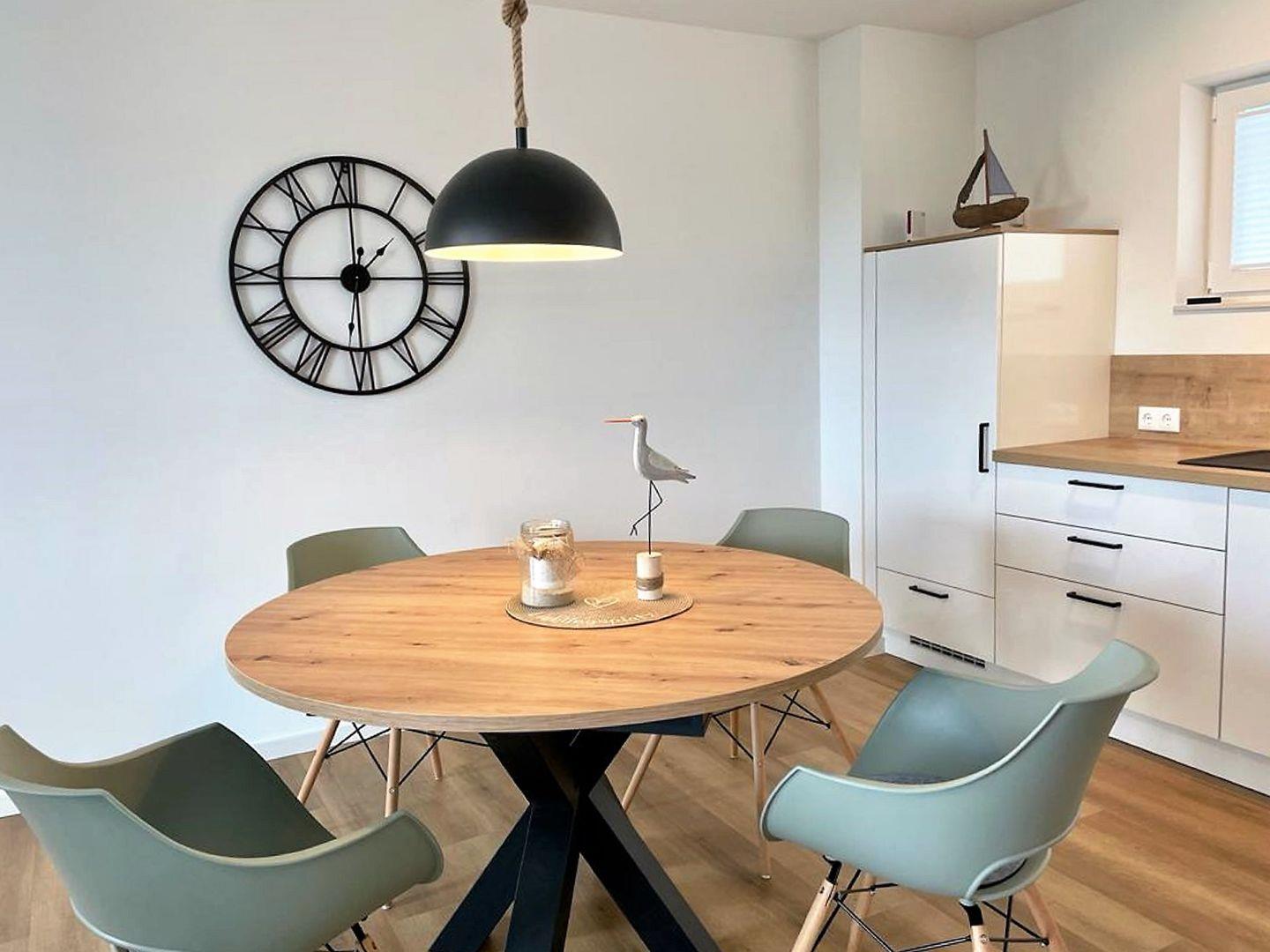 Der Küchenbereich ist modern und offen zum Wohn-Essbereich gehalten und mit einer hochwertigen Einbauküche ausgestattet.