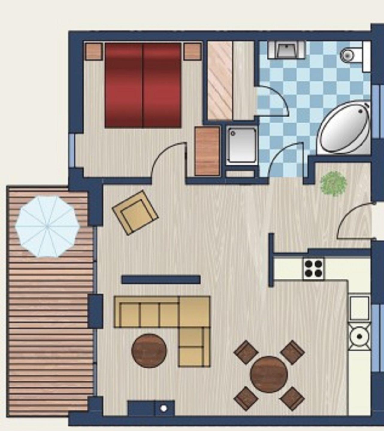 Eine Fußbodenheizung, im gesamten Apartment, sorgt an kühleren Tagen für wohlige Wärme.