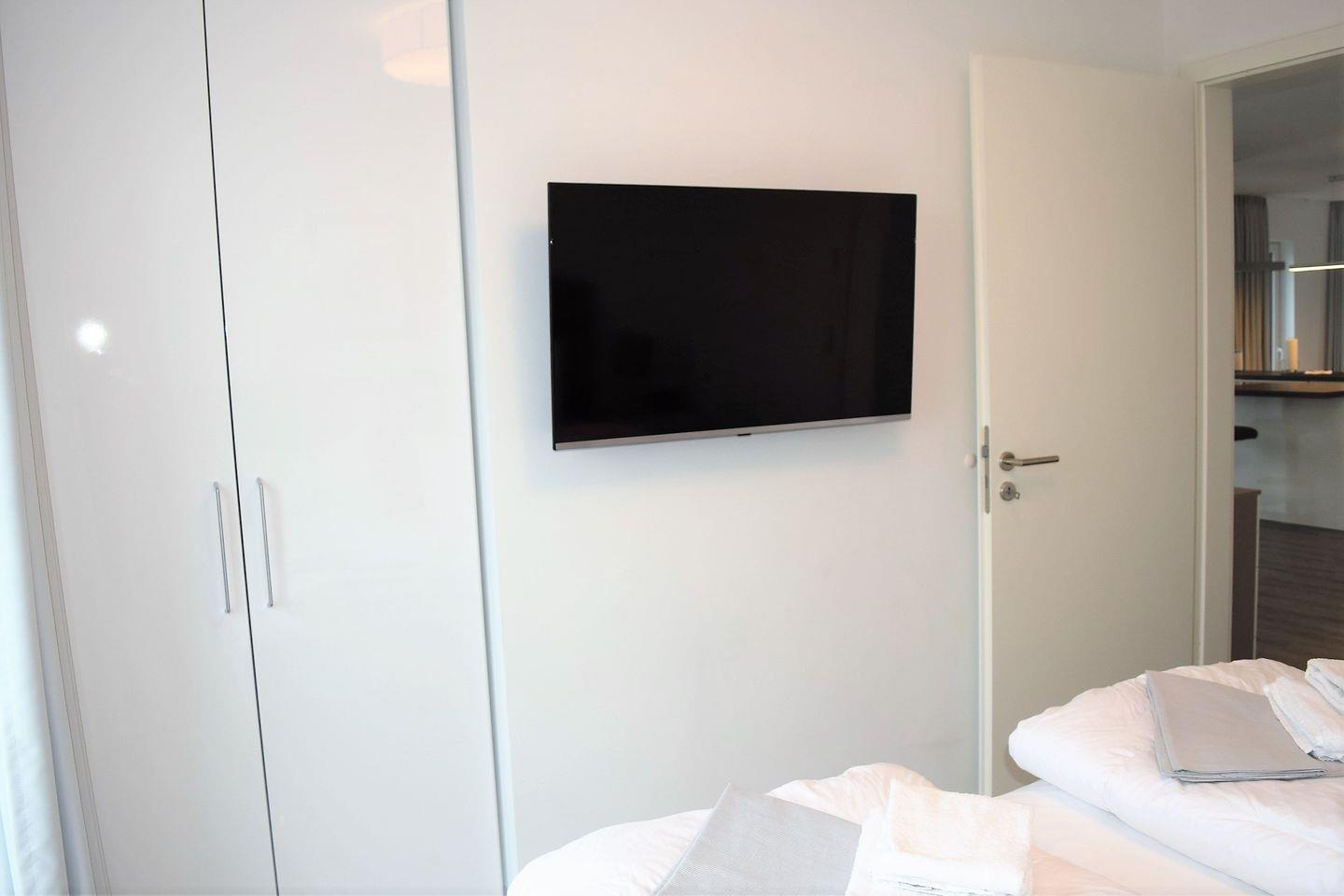 Die Ausstattung der Schlafzimmer mit Boxspringbetten lassen Hotelcharakter zu. Ein Kleiderschrank und ein zusätzlicher Fernseher stehen des weiteren in jedem Schlafzimmer zur Verfügung.