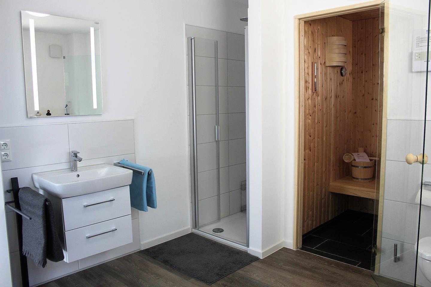 Eine Sauna, eine Regendusche und eine Badewanne bieten den nötigen Komfort zur Erholung. Saunadüfte für Ihre persönlichen Saunamomente können Sie an unserer Rezeption erwerben.