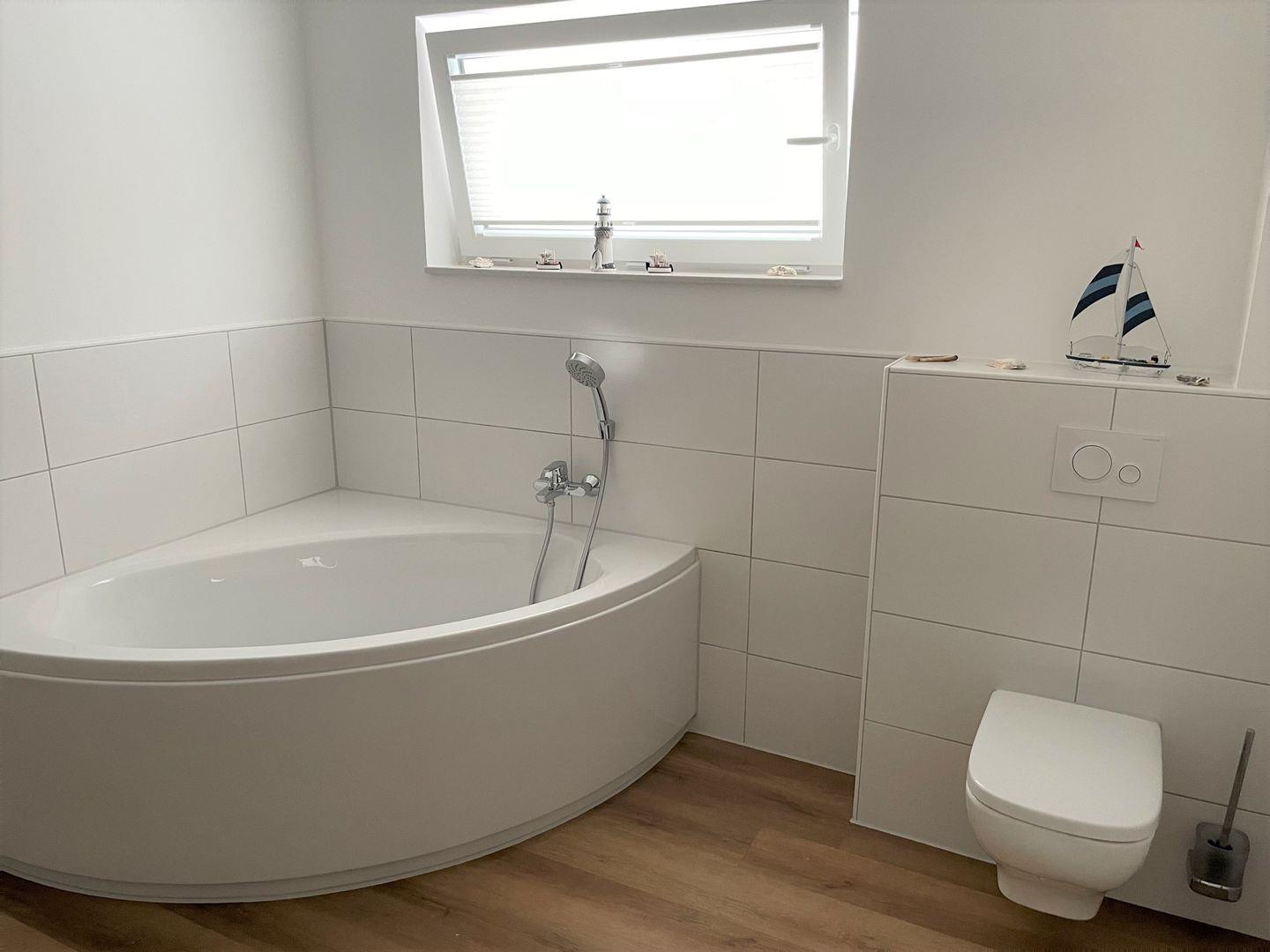 An stürmischen und/oder regnerischen Tagen wird das Badezimmer mit seiner Vollausstattung zum Wellnesstempel.