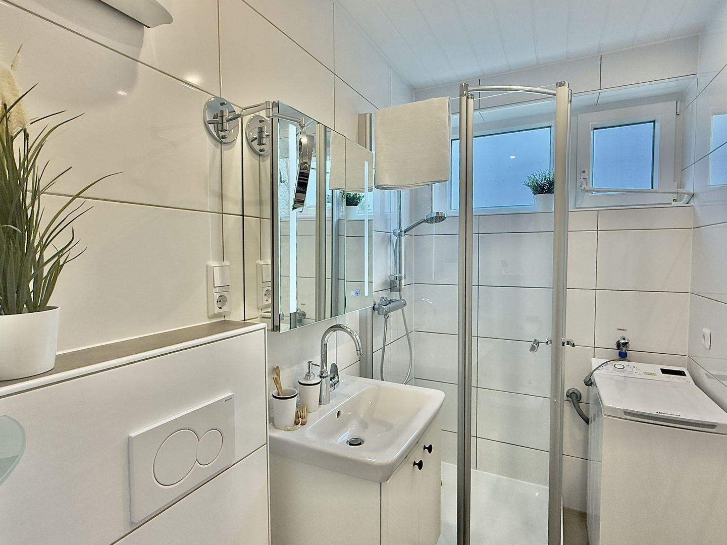 Die moderne Kochnische, die vom Wohnzimmer abgeht, bietet Ihnen alles, was Sie für eine Selbstversorgung benötigen. Das helle, freundliche Badezimmer ist mit einer Waschmaschine ausgestattet und bietet Ihnen zusätzlichen Komfort für Ihren Aufenthalt.