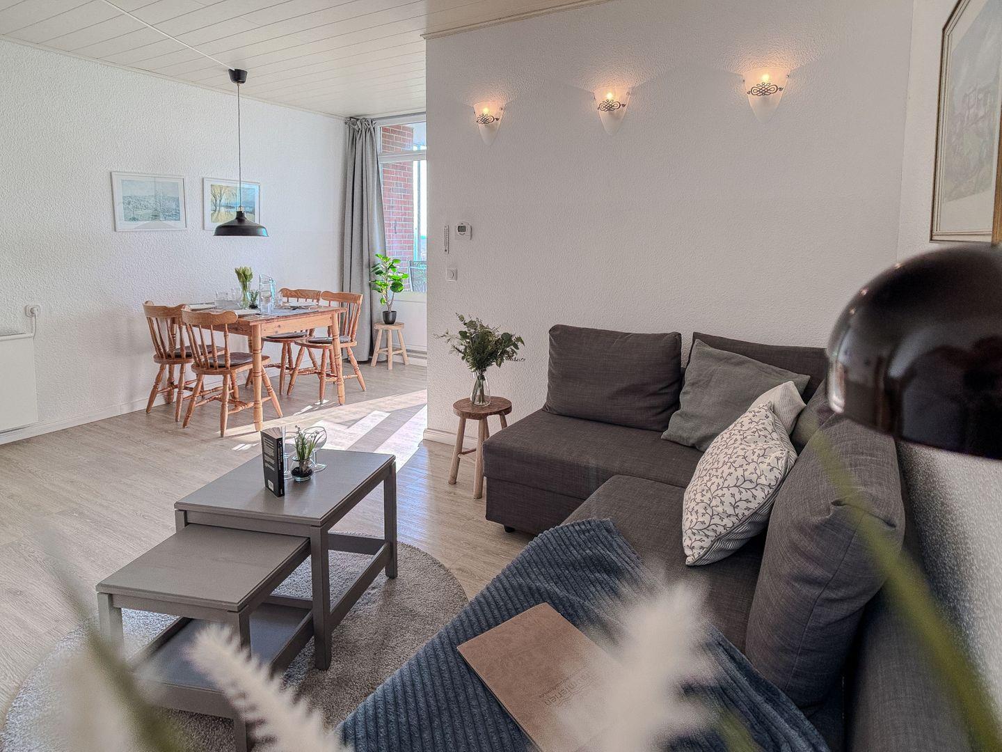 Die Ferienwohnung Sielblick (47 qm) in der ersten Etage eines Hochhauses bietet Komfort und Entspannung.