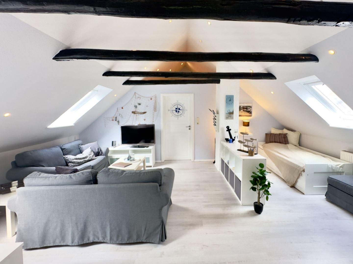 - TV, Radio, DVD Player, 2 Sofas, 2 große Dachfenster