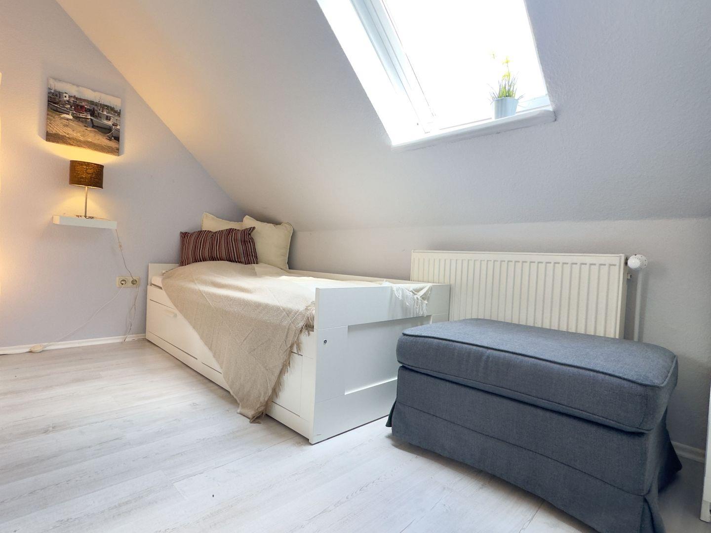 Es erwartet Sie eine ca. 60qm große Ferienwohnung im Dachgeschoß eines Zweifamilienhauses, ein Schlafzimmer ausgestattet mit einem Doppelbett, ein Wohn-/Schlafraum ausgestattet mit einem Einzelbett, offene Küche, Esszimmerbereich, Badezimmer mit Badewanne, Gartenanteil mit Terrasse