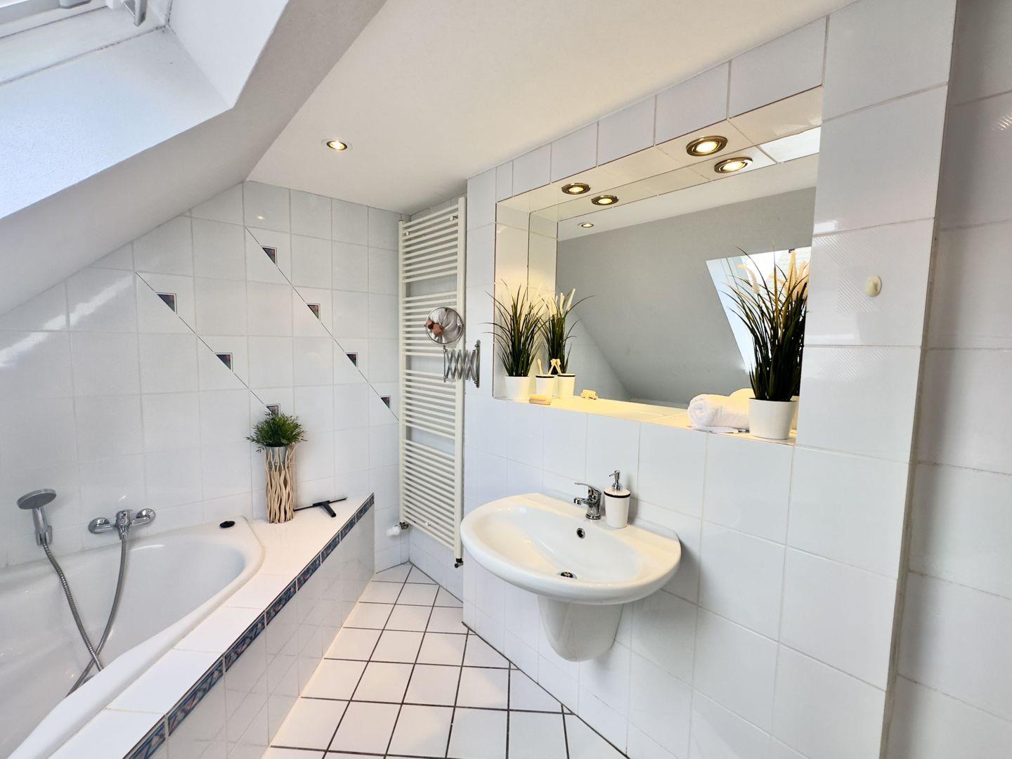 - Badewanne, WC, Wandspiegel, Kosmetikspiegel, WC-Papier, Badvorleger