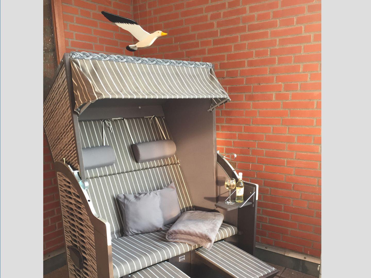 Balkon: Strandkorb, Sitzgelegenheit für 4 Personen