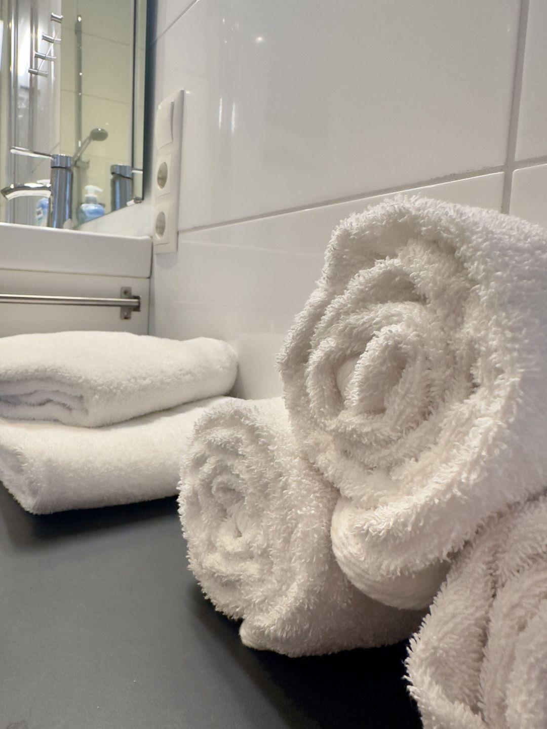 Hochwertige Premium Bettwäsche und Handtücher sind separat in Form von Wäschepaketen zu buchen. Sie benötigen für jede Person ein Wäschepaket.