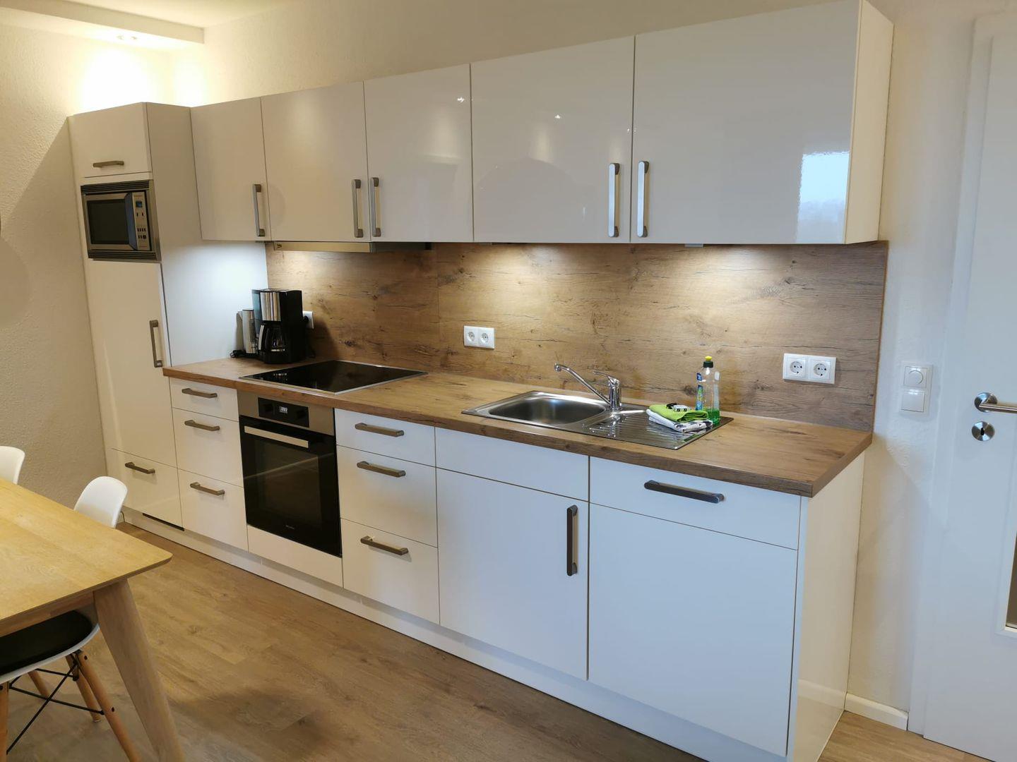 Küche: Geschirrspüler, Gefrierfach, Backofen, Kaffeemaschine, Toaster, Wasserkocher