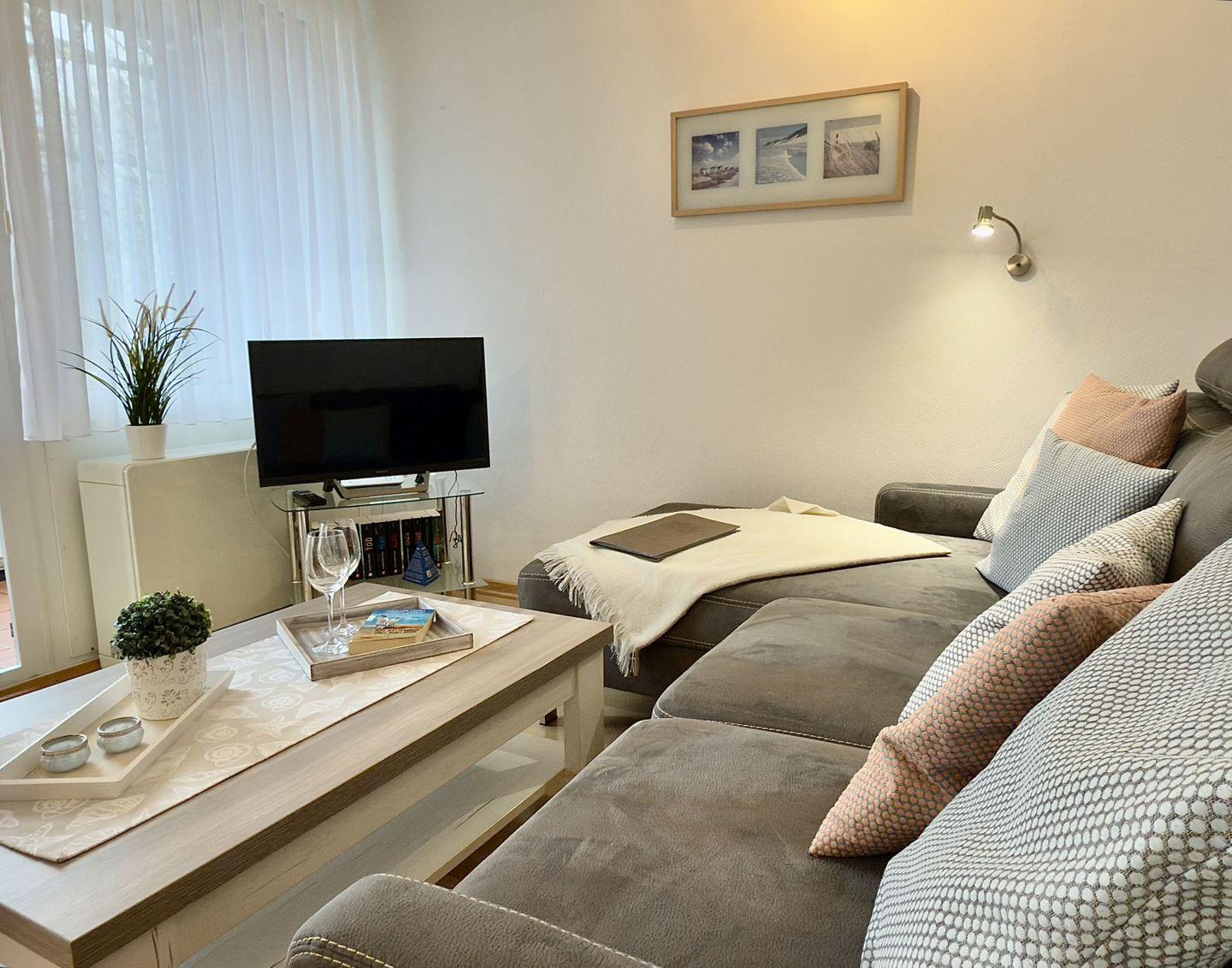 Diese kleine gemütliche Ferienwohnung in einer sehr ruhigen Sackgassenlage liegt im ersten Stock und ist frisch renoviert. Sie ist ausgestattet mit einer Wohn-Küche, einem Zwei-Bett-Zimmer, einem Flur, Dusche/WC und einem Balkon. Ein Flachbildschirm und kostenloses W-Lan sind selbstverständlich. Die neue schicke Küche ist sehr gut bestückt, unter anderem mit Mikrowelle und Kühlschrank mit einem Gefrierfach. Diese Ferienwohnung liegt in eine Sackgassenlage: Absolut ruhig und dennoch in sehr wenigen Gehminuten ist man im Zentrum vom Dorf Horumersiel.