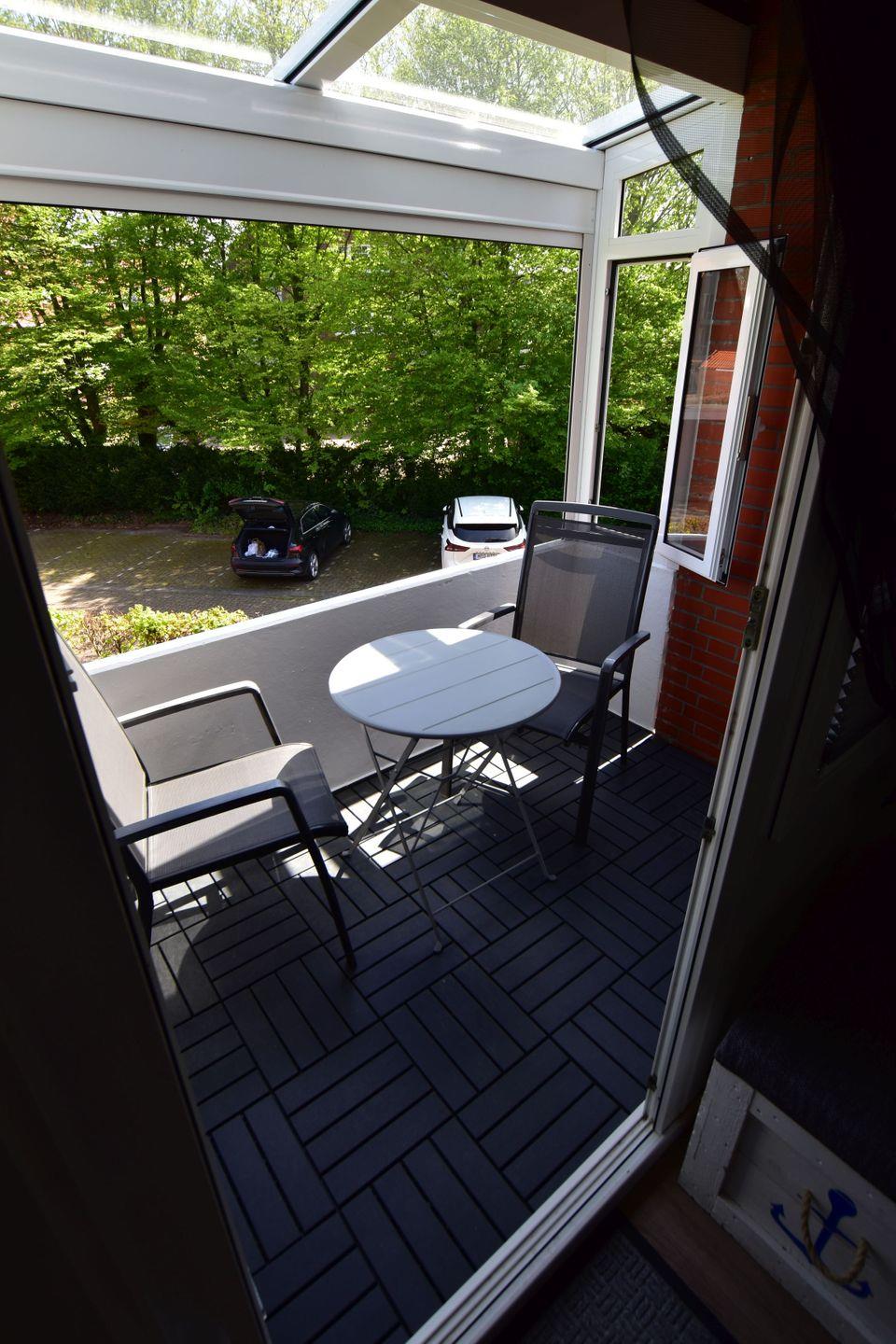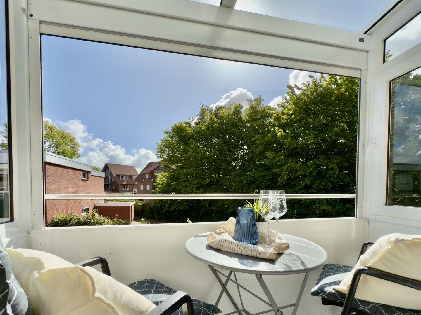 Der Balkon bietet einen wunderschönen Blick ins Grüne – hier finden Sie Ihre wohlverdiente Auszeit.