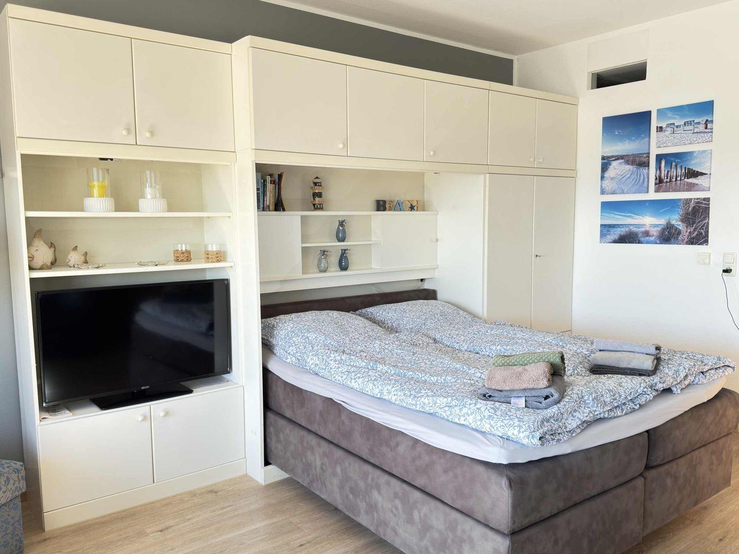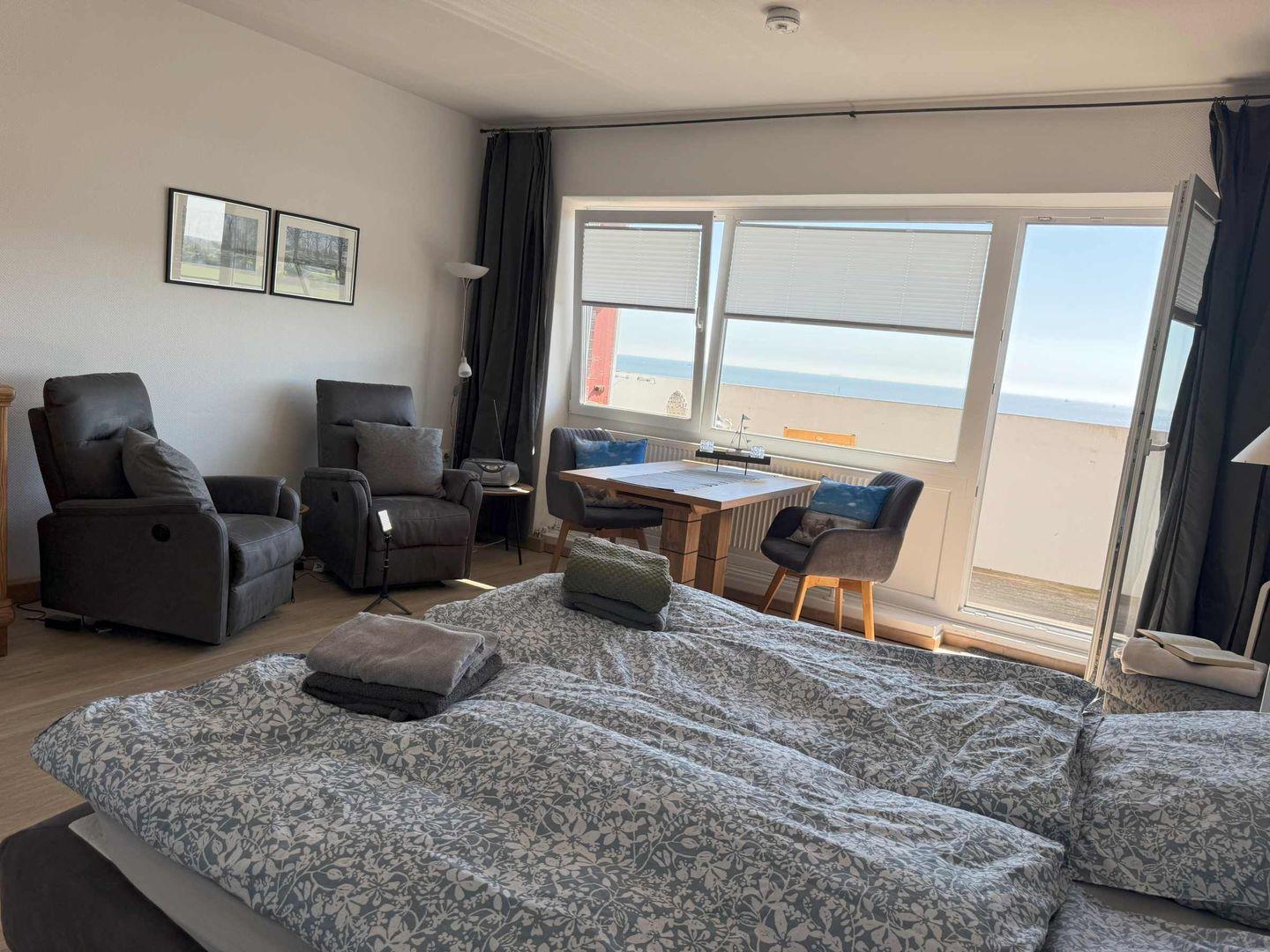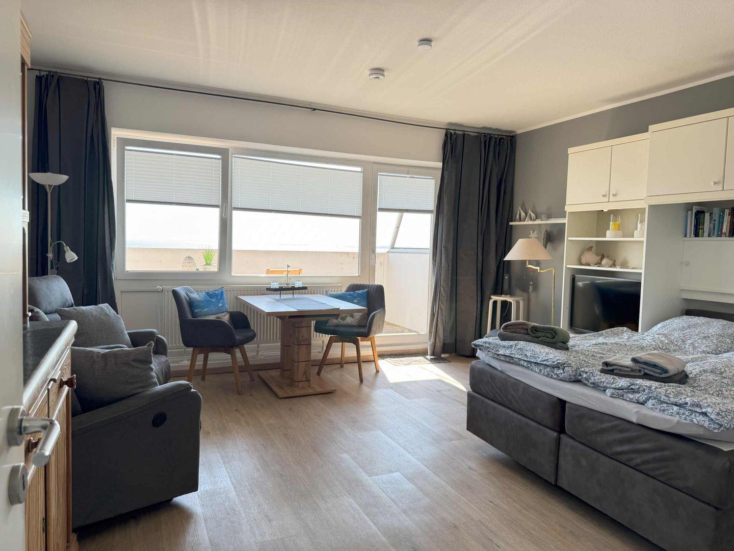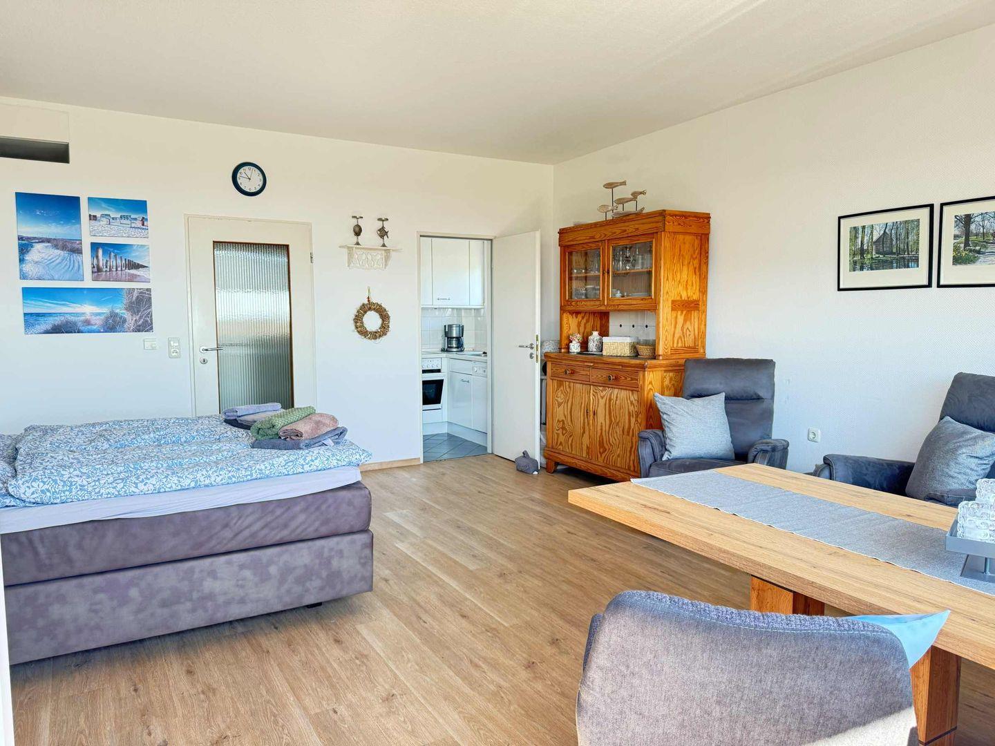 Unser gemütliches und hell eingerichtetes Appartement bietet einen traumhaften Ausblick auf den Yachthafen und auf die Nordseeküste. Das Einzimmerappartement ist ca. 40 qm groß und eignet sich für 2 Personen. Die Schlafgelegenheit ist ein Boxspringbett. Die Ferienwohnung ist rauchfrei. Wir bitten um Verständnis, dass das Mitbringen von Haustieren nicht gestattet ist.