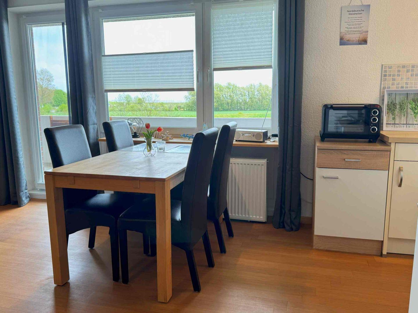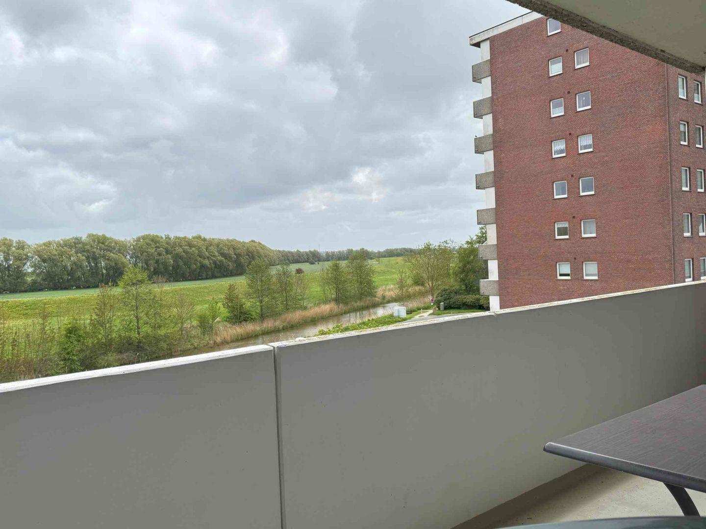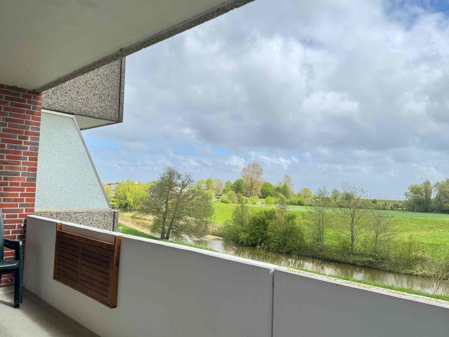 Diese moderne und klare Wohnung bietet mit seinen offenen Zimmern eine herrliche Aussicht. Auf dem großzügigem Balkon mit Blick zum Meer und auf den Deich mit den Schafen können Sie ihr Frühstück sonnig genießen.
