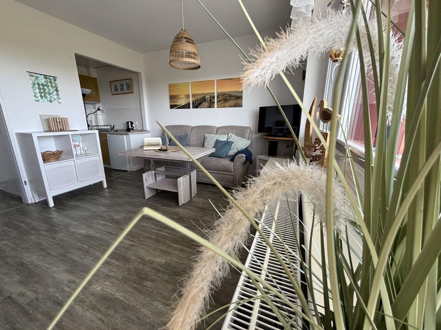 Sie ist neu möbliert und das Bad ist frisch renoviert. Im Wohnzimmer befindet sich ein ausklappbares Schrankbett für 2 Personen. Die Küche ist mit allem ausgestattet was man für einen entspannten Urlaub braucht.