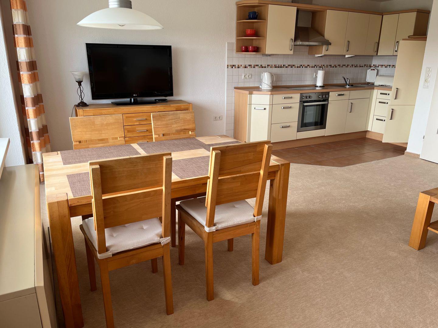 Die kernsanierte Wohnung ist für 2 - 4 Personen eingerichtet. Die Einrichtung besteht aus hochwertiger Kernbuche. Das Schlafzimmer ist mit 2 getrennten Betten eingerichtet und das Sofa ist ein Schlafsofa. Im großzügigen Wohn-Essraum befindet sich eine offene Küche. Im Sitzbereich erwartet Sie ein großer Flachbildschirm. Das Bad wurde mit einer überaus großen Duschfläche bedacht. Zur Wohnung gehört ein Balkon .