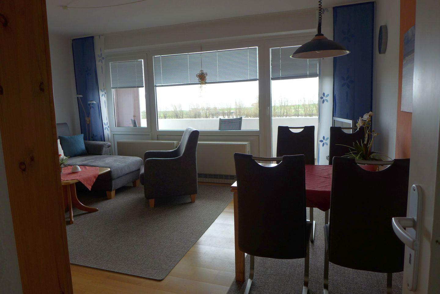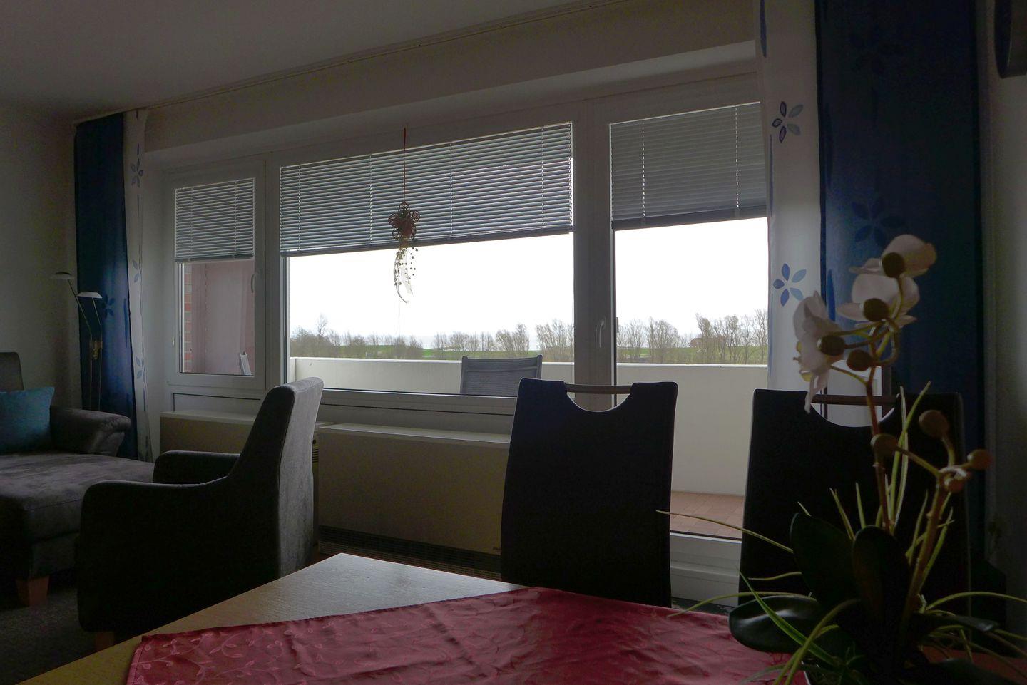Vom Wohnzimmer mit herrlichem Blick zum Meer kommt man direkt auf den angrenzendem Balkon, wo bei schönen Sonnenschein nicht nur die Schiffe beobachtet werden können oder in aller Ruhe ein schönes Sonnenbad genossen werden kann.