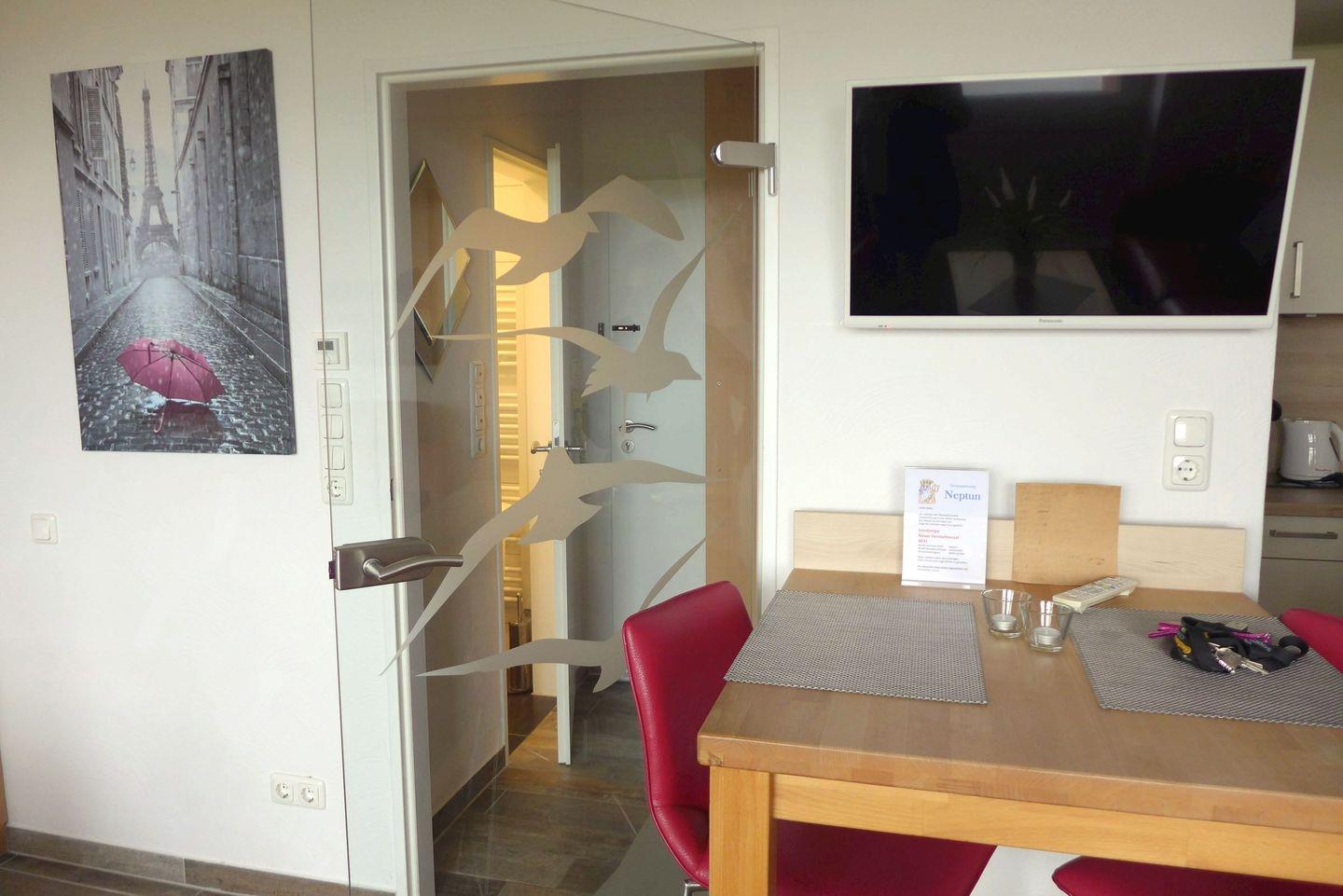 Die moderne Einrichtung und die komfortable Küche mit Geschirrspüler, Cerankochfeld, Kühlschrank mit Tiefkühlfach und vielem mehr, werden Sie begeistern. Außerdem ist die Ferienwohnung mit WLAN ausgerüstet, damit Sie in Ihrem Urlaub auf nichts verzichten müssen.