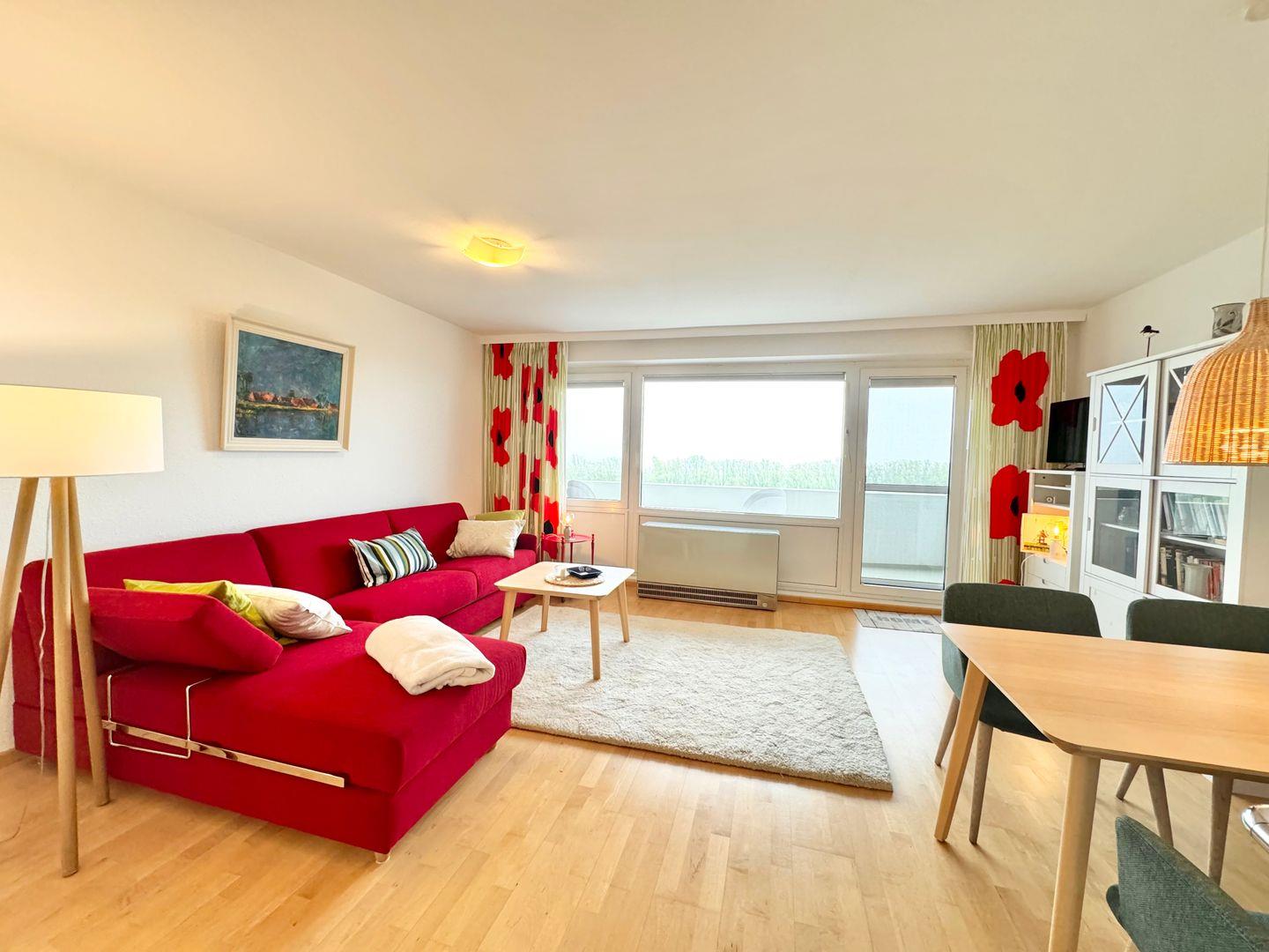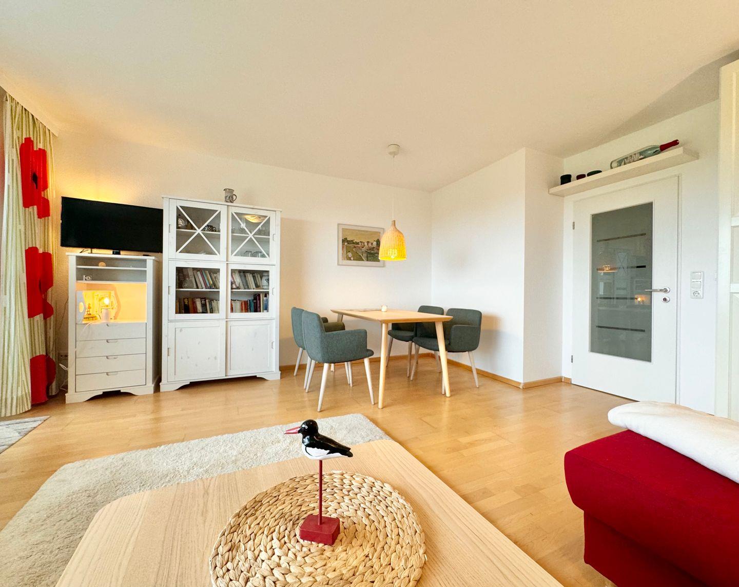 In unserer Wohnung Leuchtturm in der siebten Etage ist der Blick über die Nordsee frei soweit das Auge reicht. Beobachten Sie Fischkutter, Yachten und Frachter direkt vom Frühstückstisch aus.