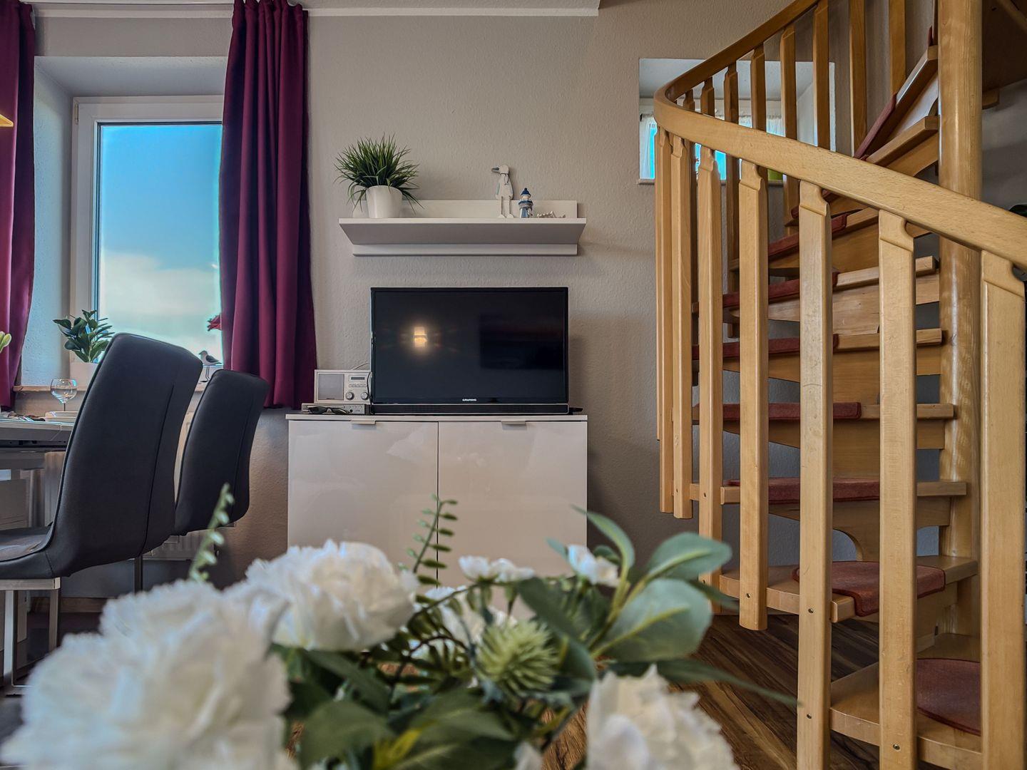 Willkommen im Inselkieker! Unsere helle, freundliche Ferienwohnung in der 2. Etage erstreckt sich über zwei Ebenen und bietet Platz für bis zu 4 Personen.
