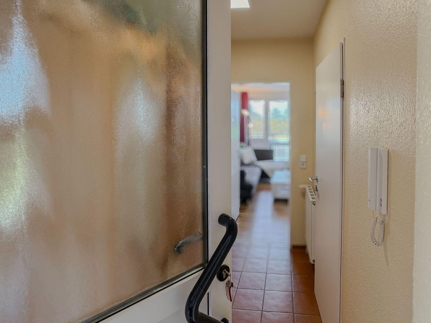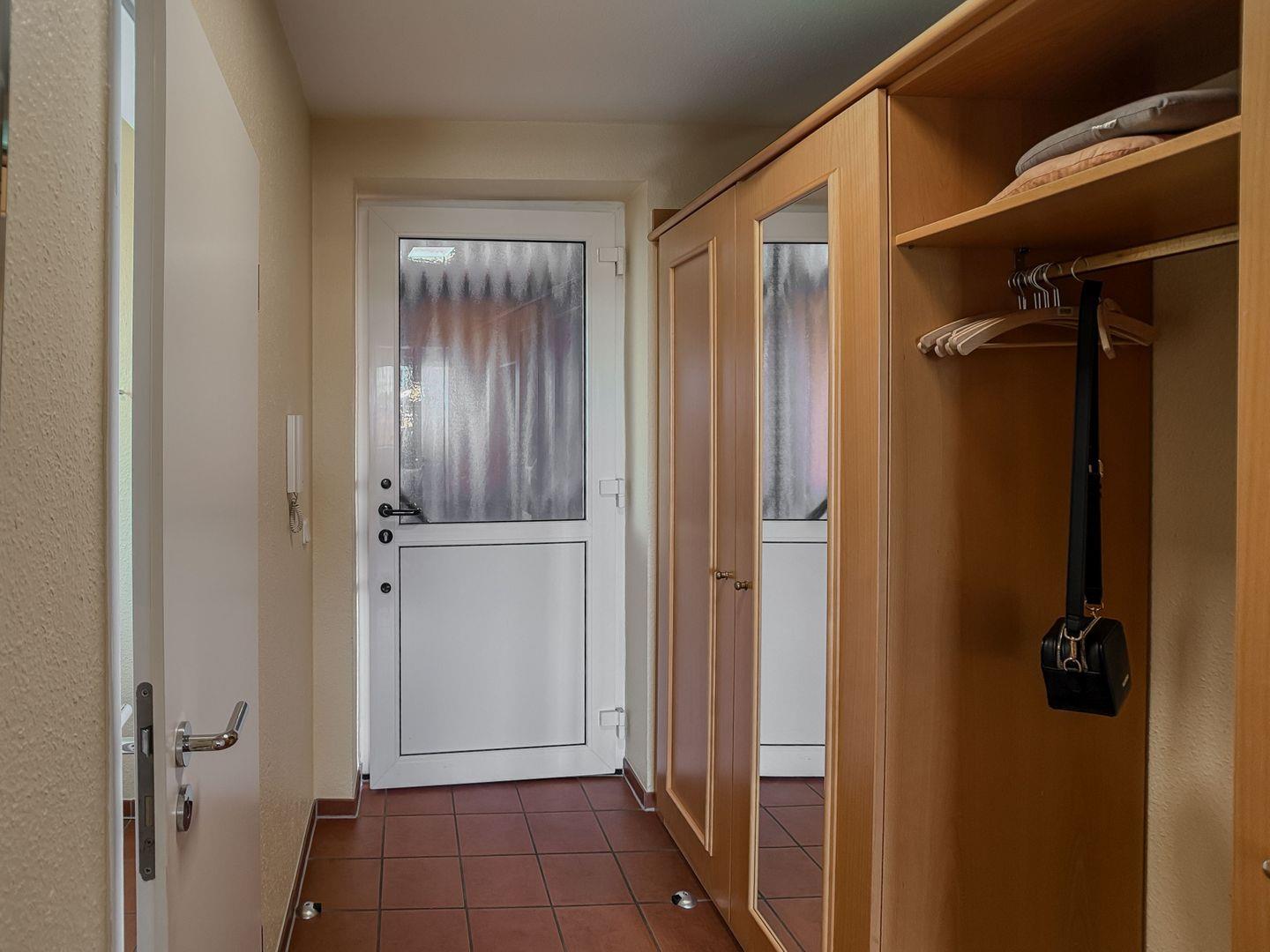 Treten Sie ein in unsere helle und freundliche 53 m² große Ferienwohnung im 2. Obergeschoss, die Ihnen bereits beim Betreten ein Gefühl von Urlaub vermittelt. Der großzügige Flur bietet ausreichend Platz für Jacken, Schuhe und all das, was Sie für einen perfekten Tag am Strand benötigen.