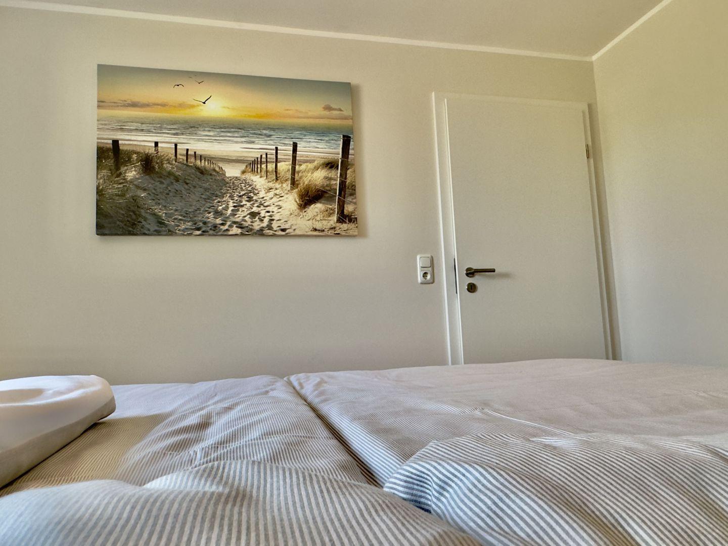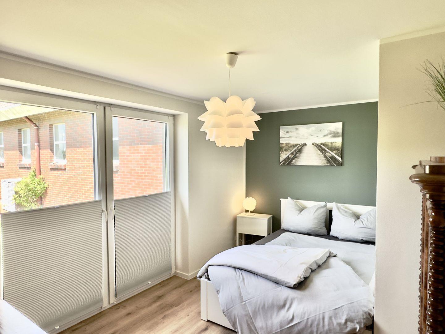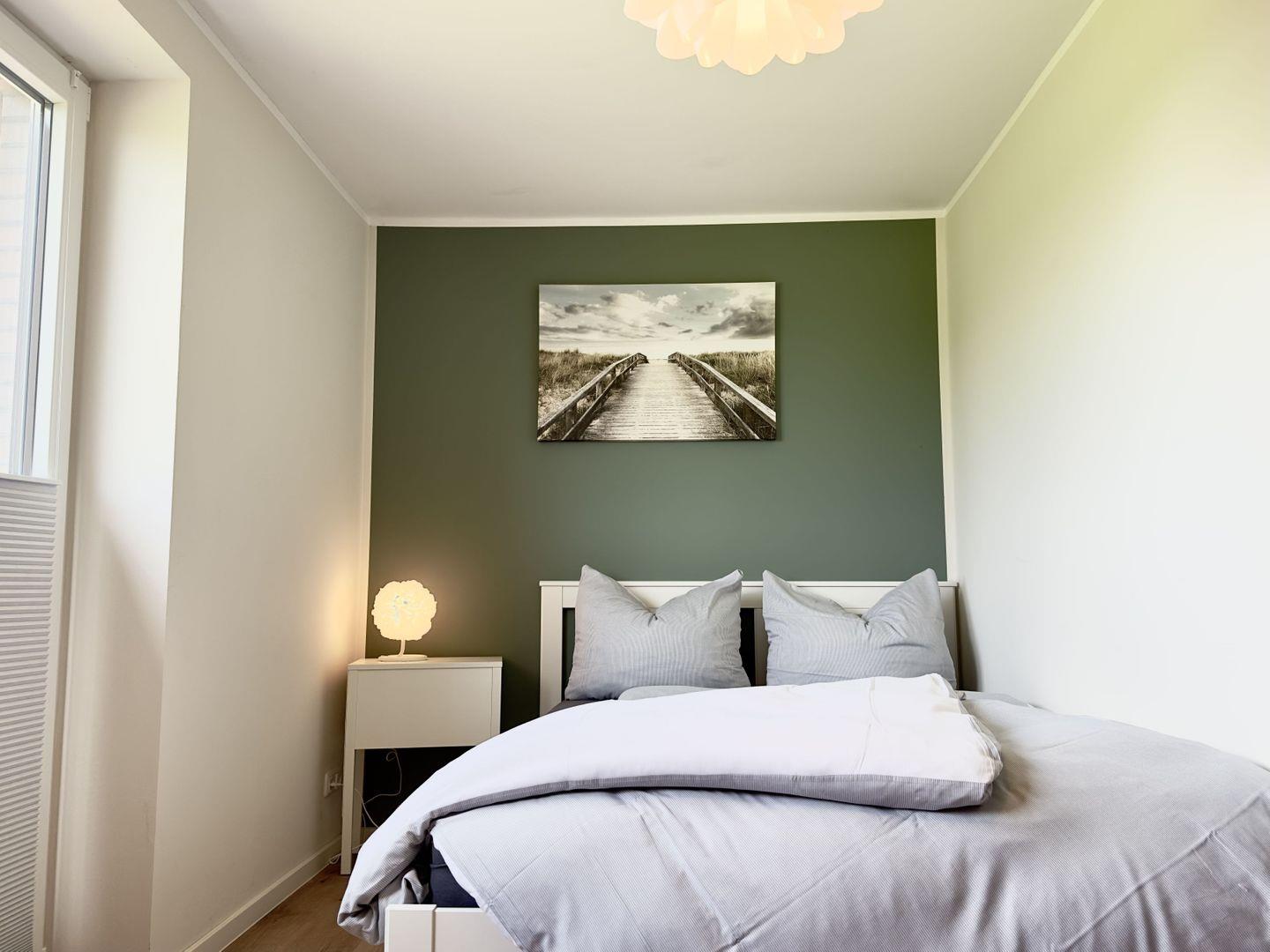 Das Schlafzimmer, ausgestattet mit einem komfortablen Boxspringbett und einem geräumigen Kleiderschrank, bietet Ihnen den perfekten Raum für erholsame Nächte. Das zweite Schlafzimmer ist ebenfalls liebevoll eingerichtet und verfügt über ein Doppelbett, eine Kommode sowie einen Sekretär – der ideale Platz für Ruhe und Rückzug.