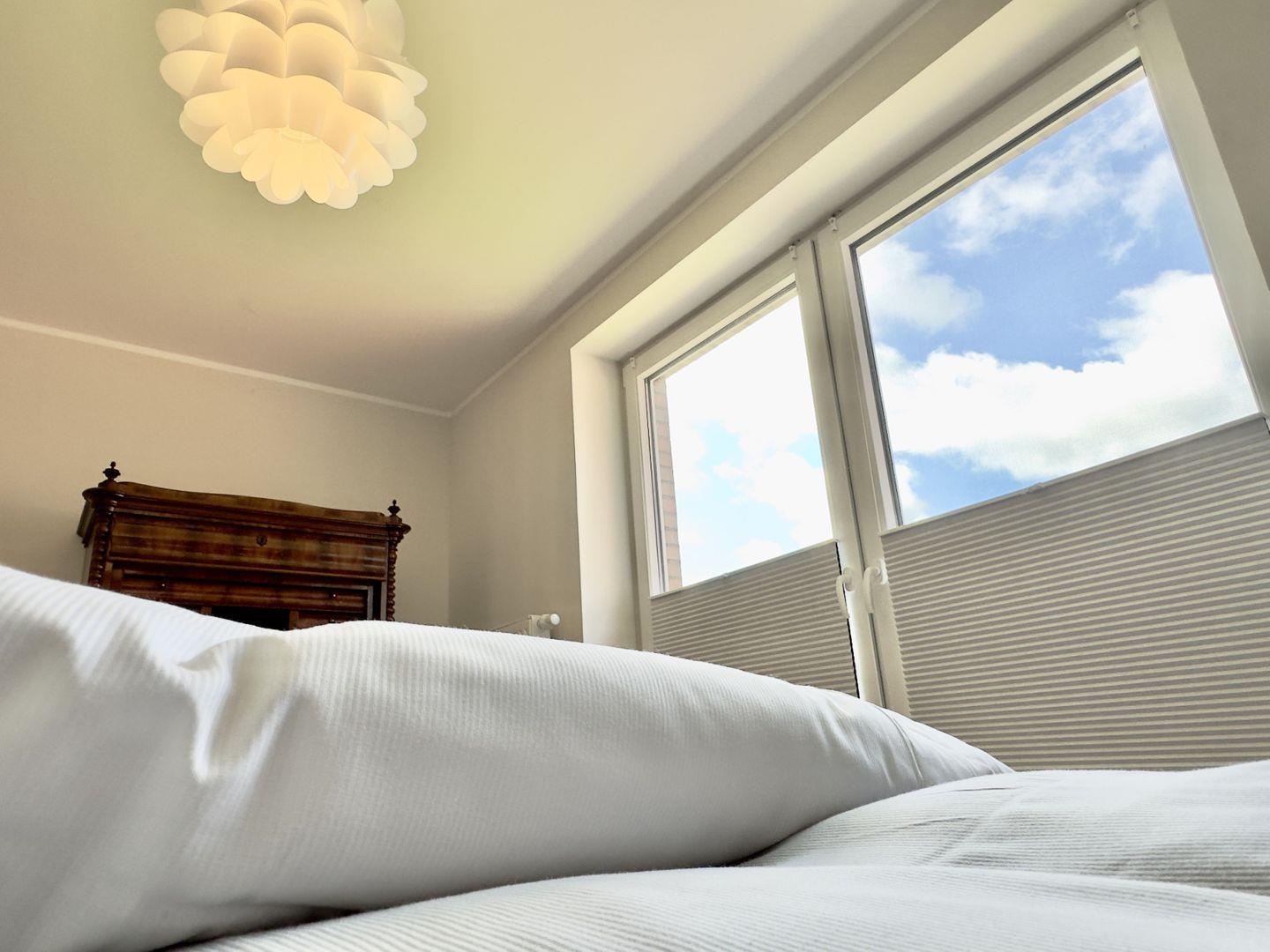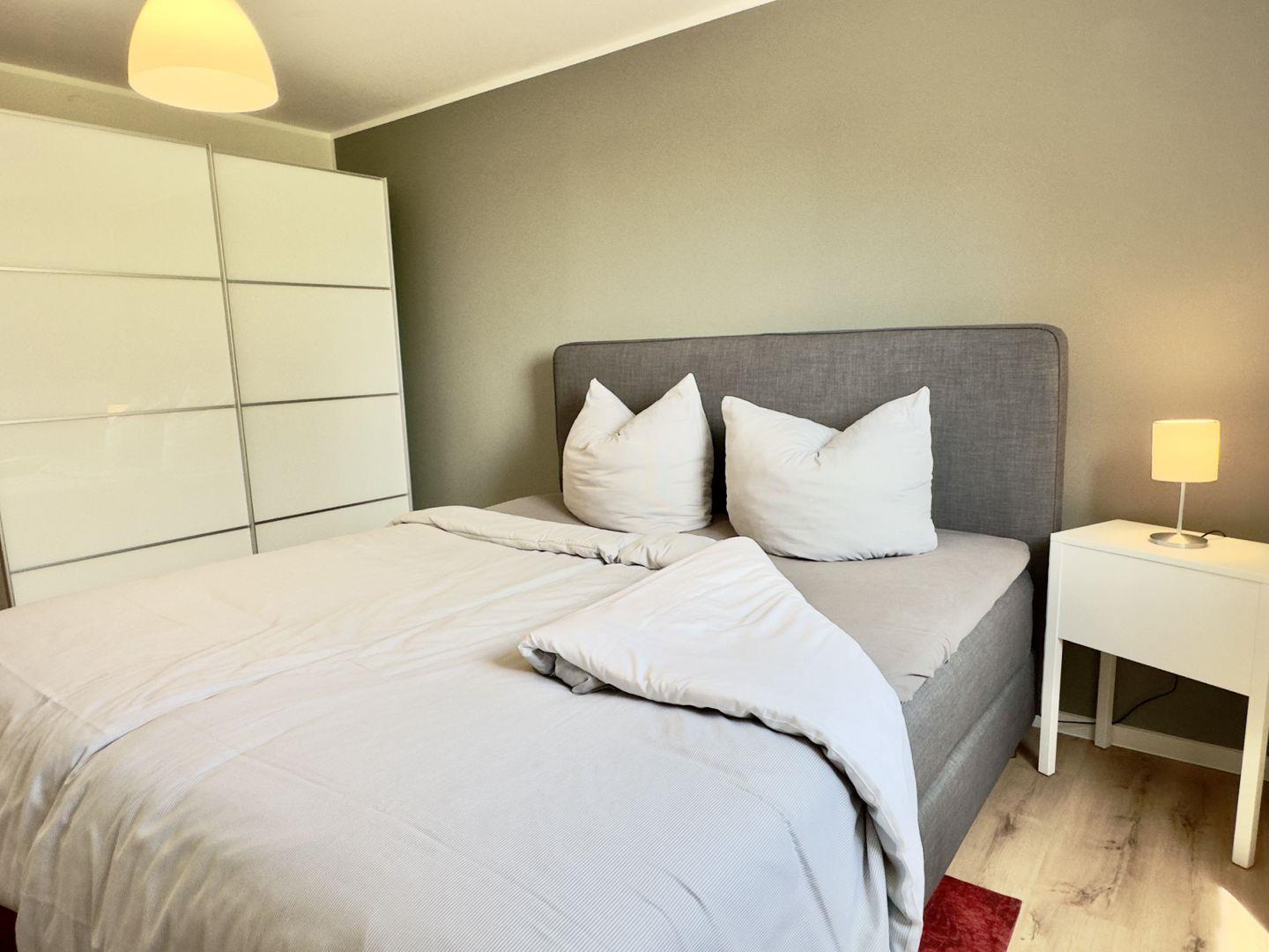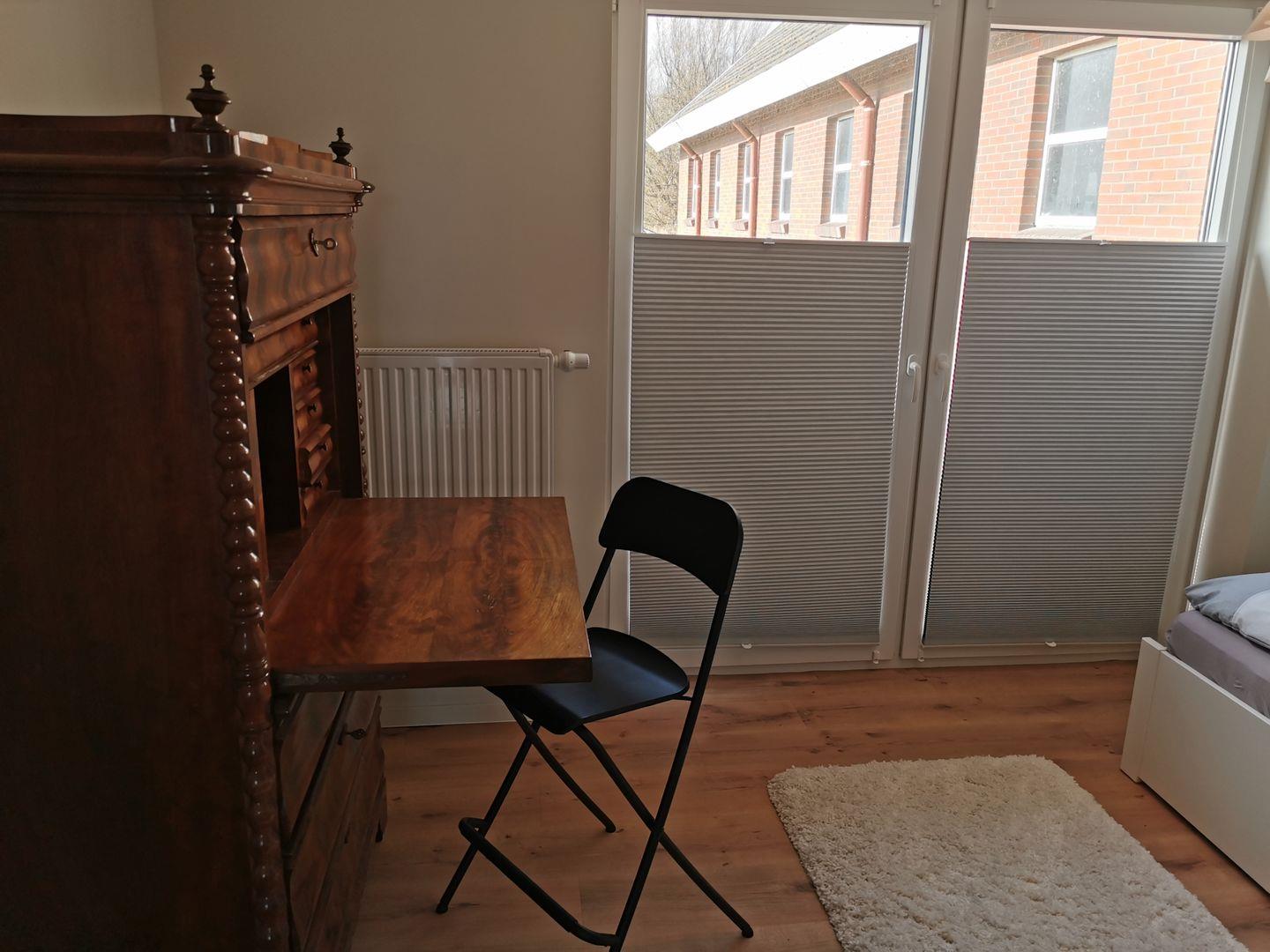 Das Schlafzimmer, ausgestattet mit einem komfortablen Boxspringbett und einem geräumigen Kleiderschrank, bietet Ihnen den perfekten Raum für erholsame Nächte. Das zweite Schlafzimmer ist ebenfalls liebevoll eingerichtet und verfügt über ein Doppelbett, eine Kommode sowie einen Sekretär – der ideale Platz für Ruhe und Rückzug.