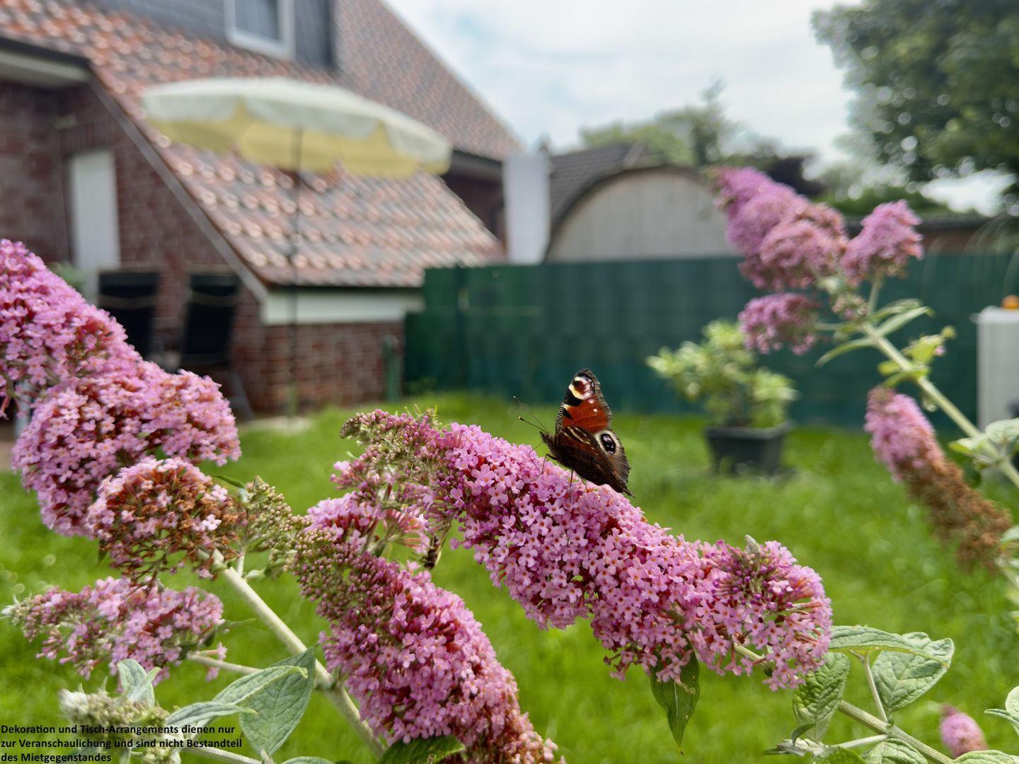 Der Garten und die Terrasse laden zum Entspannen ein. Ihr Hund ist herzlich willkommen. Erleben Sie Komfort und Gemütlichkeit in diesem einladenden Feriendomizil an der Nordsee.