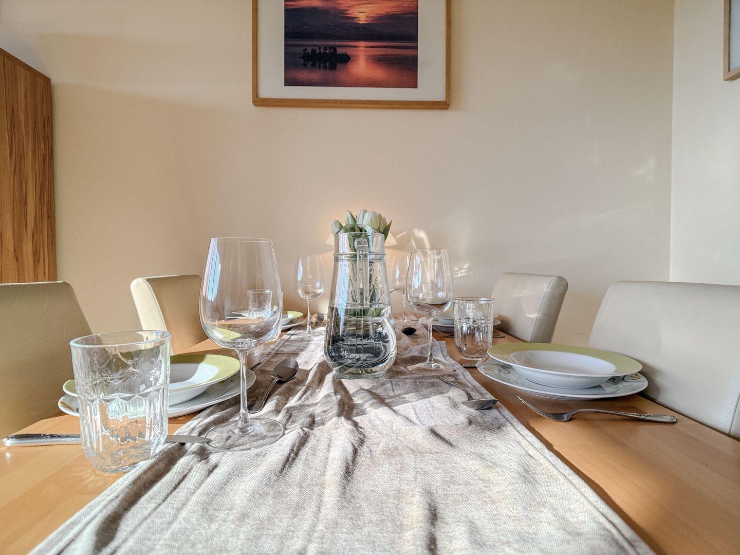 Die kleine, aber bestens ausgestattete Küche lädt dazu ein, gemeinsam zu kochen, zu lachen und zu genießen – ganz in Ihrem eigenen Rhythmus.