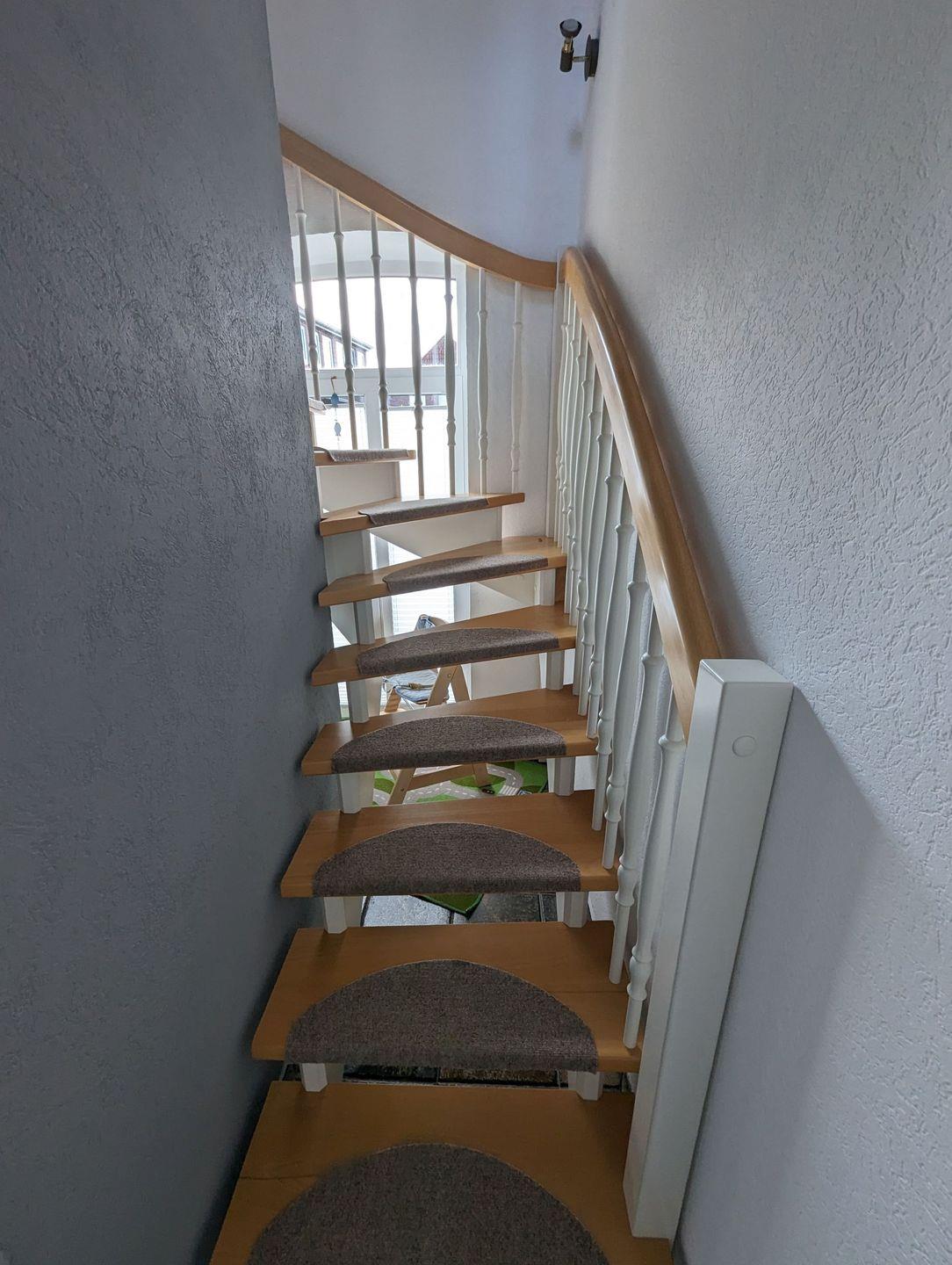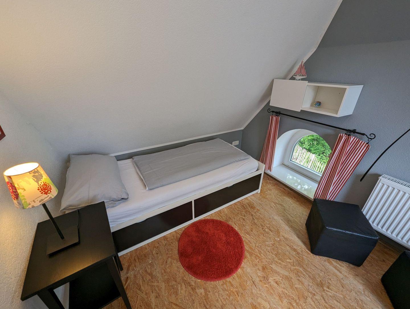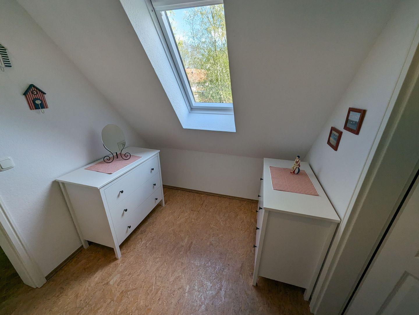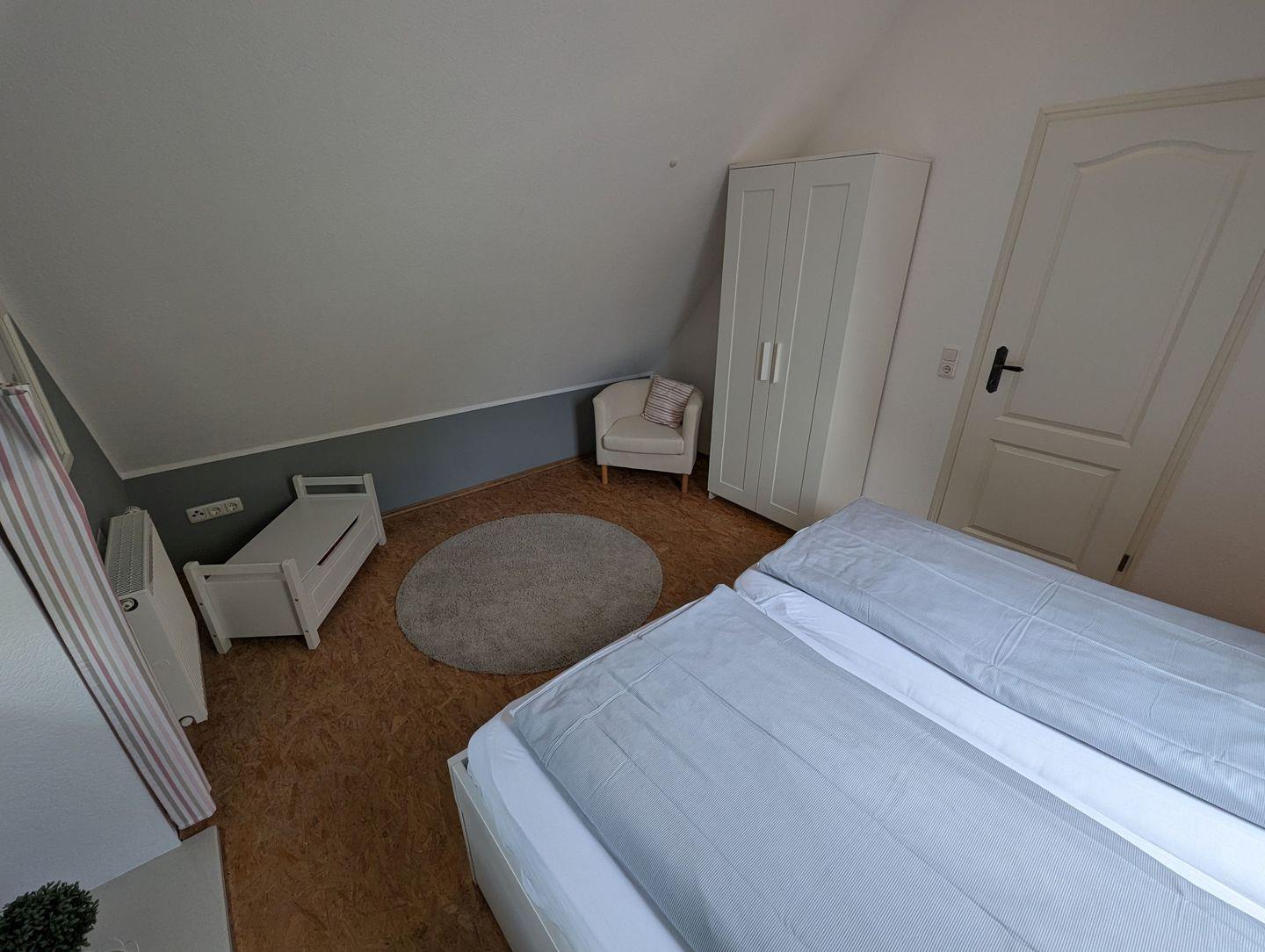 Eine stabile Treppe führt Sie in das Obergeschoss, wo Sie in den behaglich eingerichteten Schlafzimmern zur Ruhe kommen können. Diese bieten den perfekten Rückzugsort nach einem erlebnisreichen Tag.