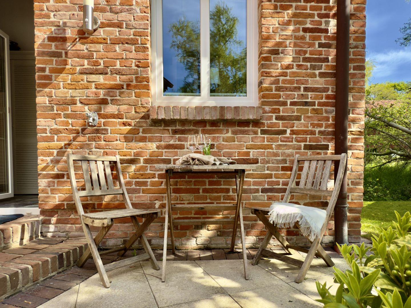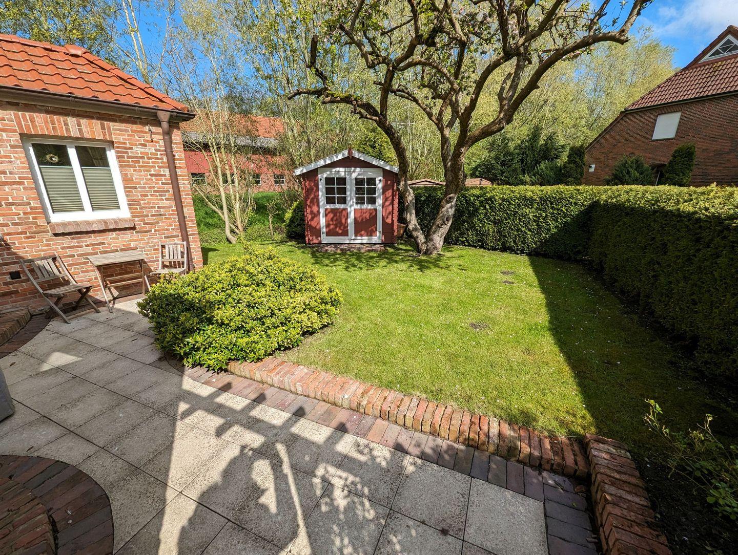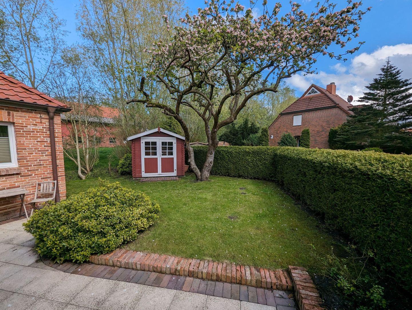 Der liebevoll gestaltete Garten lädt zum Verweilen ein und bietet viel Platz für Kinder zum Spielen und Toben. Ob auf der großzügigen Terrasse, der kleinen, gemütlichen Terrasse oder im Strandkorb – hier können Sie die Seele baumeln lassen und die Schönheit der Natur genießen.