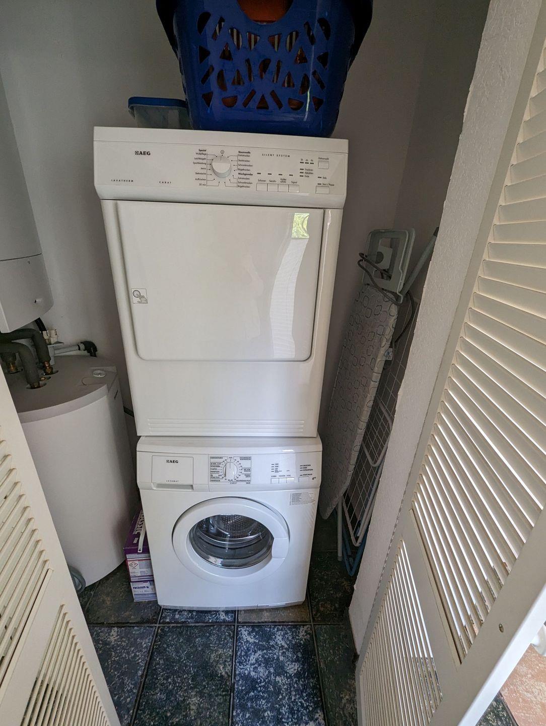 Für zusätzlichen Komfort während Ihres Aufenthalts stehen Ihnen Waschmaschine und Trockner zur Verfügung. Diese befinden sich im Abstellraum der Küche, sodass Sie Ihre Wäsche ganz bequem vor Ort erledigen können – ideal für längere Aufenthalte oder wenn Sie frische Kleidung benötigen.