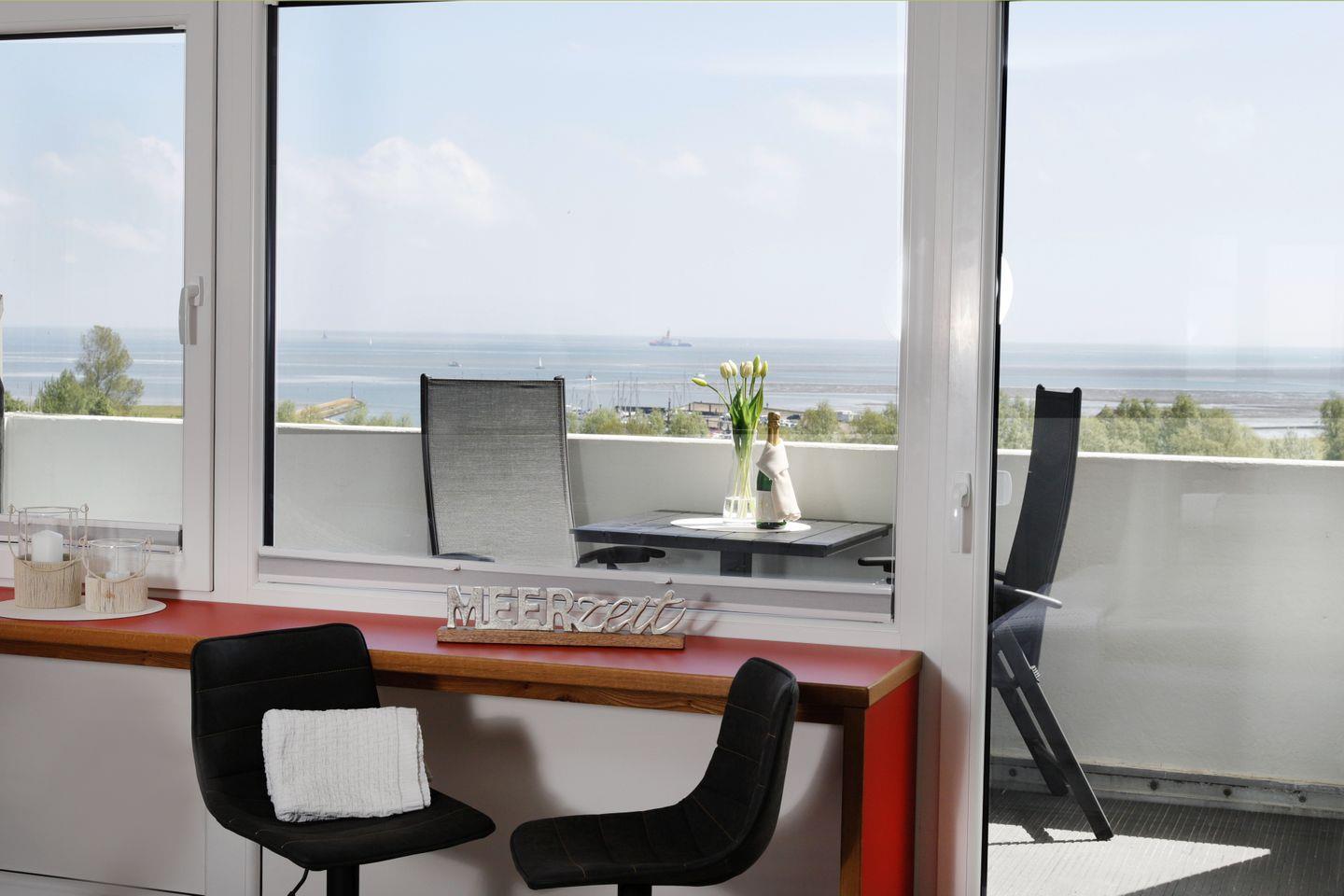 Genießen Sie den grandiosen, freien Blick auf die Nordsee und den Yachthafen von Horumersiel aus der 9. Etage.