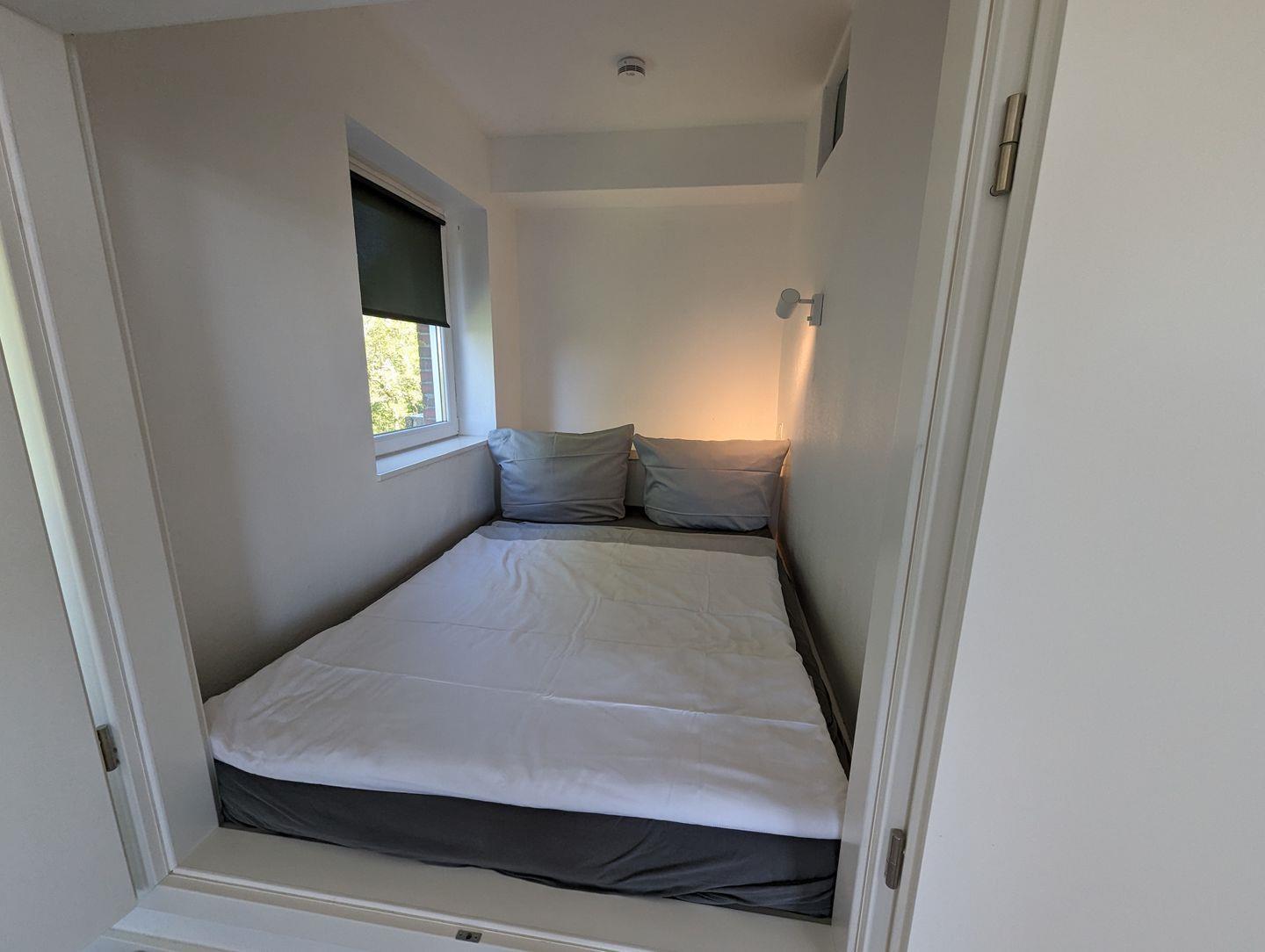 Das versteckte Bett hinter zwei kleinen Türen schafft mit seinem kojenhaften Baustil eine besonders gemütliche Atmosphäre.