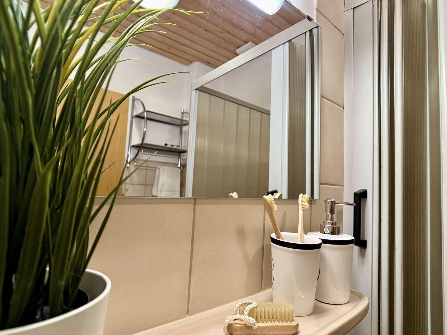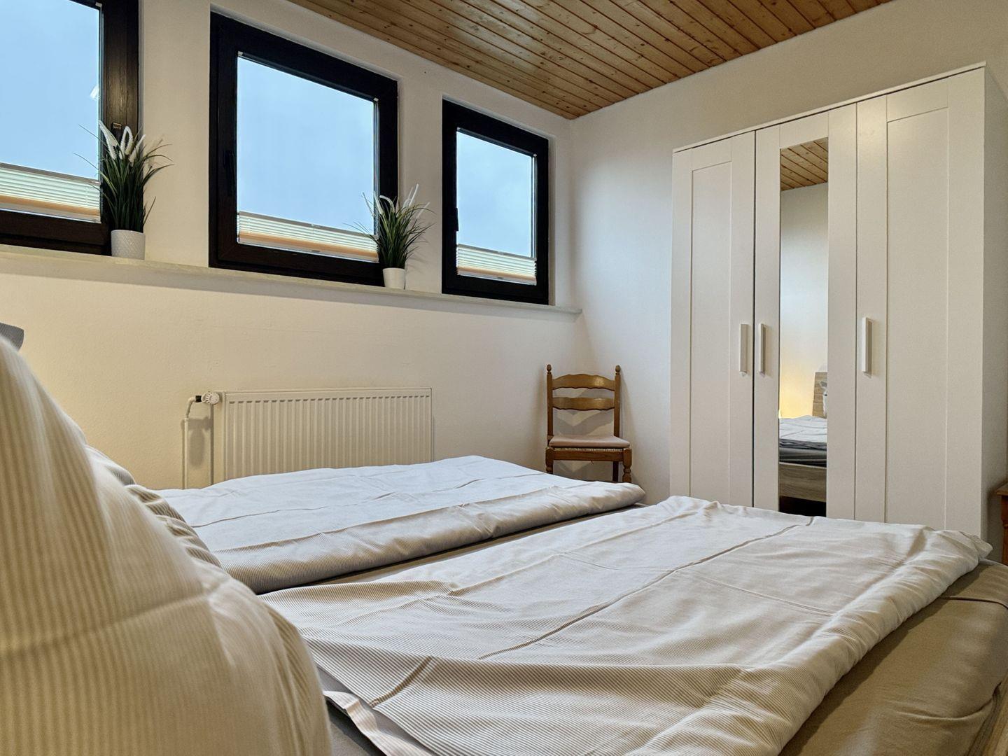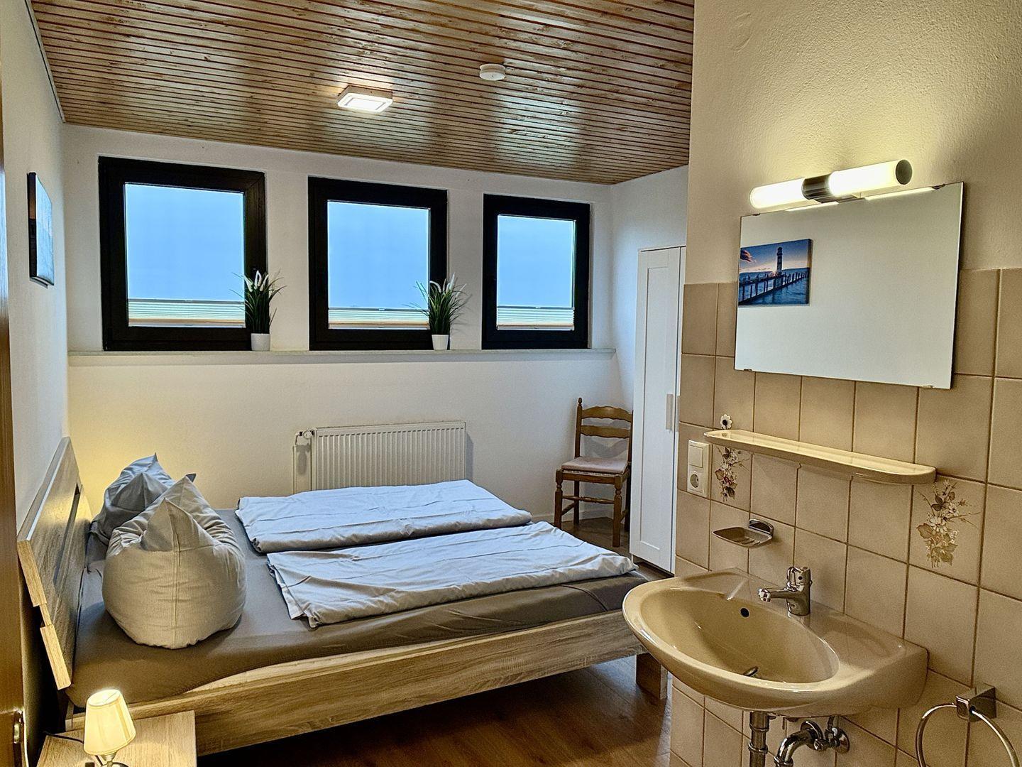 Das Schlafzimmer ist mit einem gemütlichen Doppelbett ausgestattet, das erholsamen Schlaf garantiert. Ein geräumiger Kleiderschrank sorgt für ausreichend Stauraum. Das Innenraumbad mit Dusche, WC und Waschbecken bietet alles, was Sie für Ihre tägliche Hygiene benötigen.