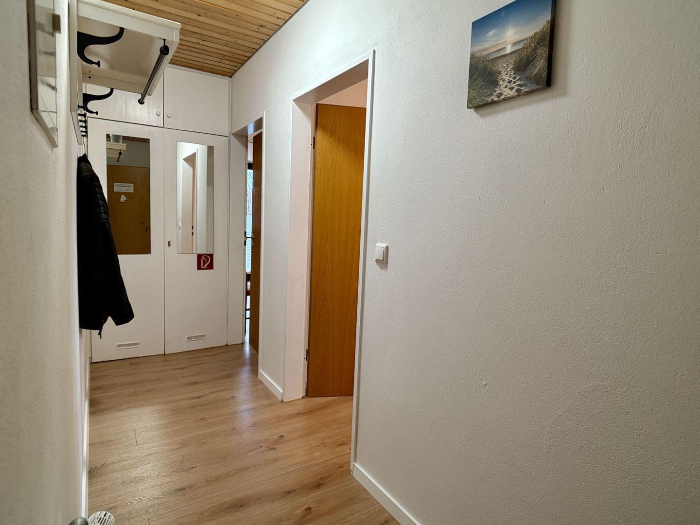Durch den hellen, freundlichen Flur gelangen Sie in den Wohnbereich, der mit seinem hellen Vinylboden eine moderne Ausstrahlung vermittelt. Das Schlafsofa im Wohnzimmer lädt zum Entspannen ein und bietet Platz für gemeinsame Mahlzeiten. Die neue Küche ist komplett ausgestattet und ideal für Selbstversorger.