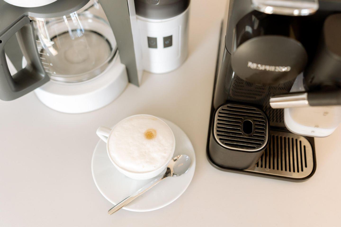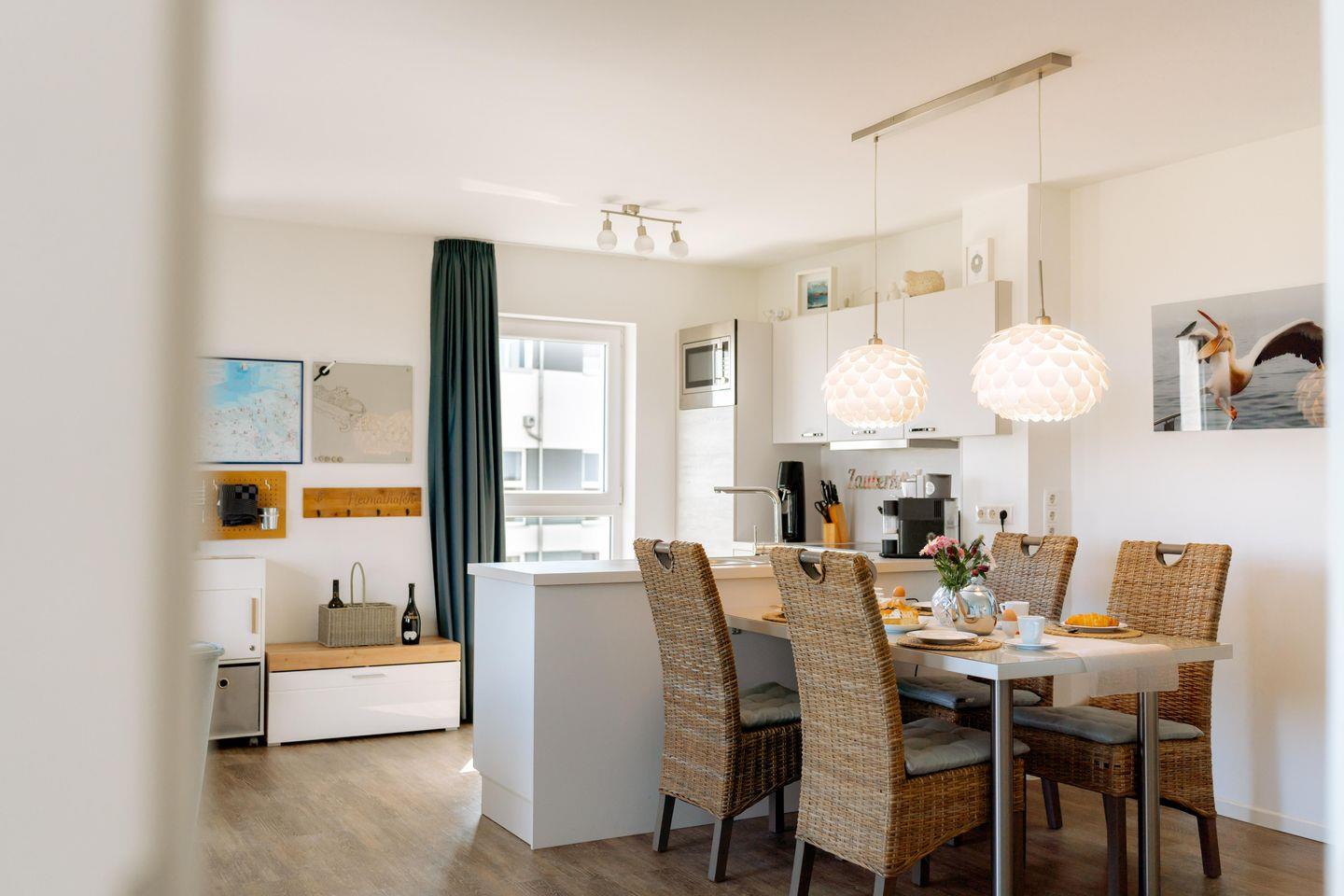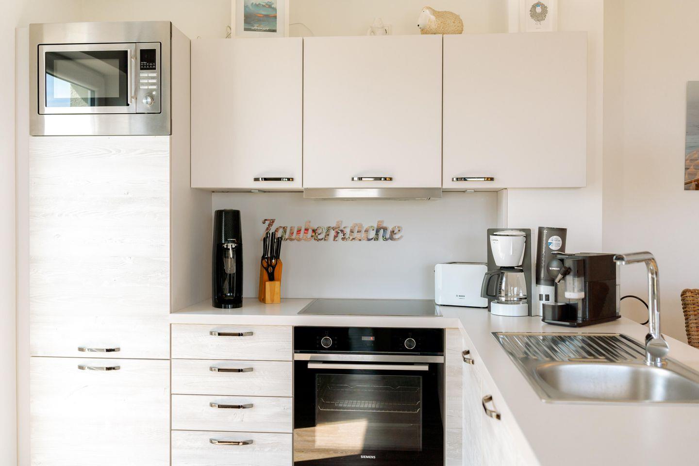 Gemeinsames Kochen und Genießen wird in der Küche von "WattnMeer von oben" zum besonderen Erlebnis. Die erstklassige Ausstattung – von der Mikrowelle, dem Airfryer über die Nespresso-Maschine bis hin zum Raclette-Set und dem Fonduegerät – erfüllt Deine kulinarischen Träume. Ob Du das Frühstück auf dem Balkon genießt oder ein gemütliches Abendessen im Essbereich planst, hier wird jede Mahlzeit zu einem Highlight für Hobbyköche.