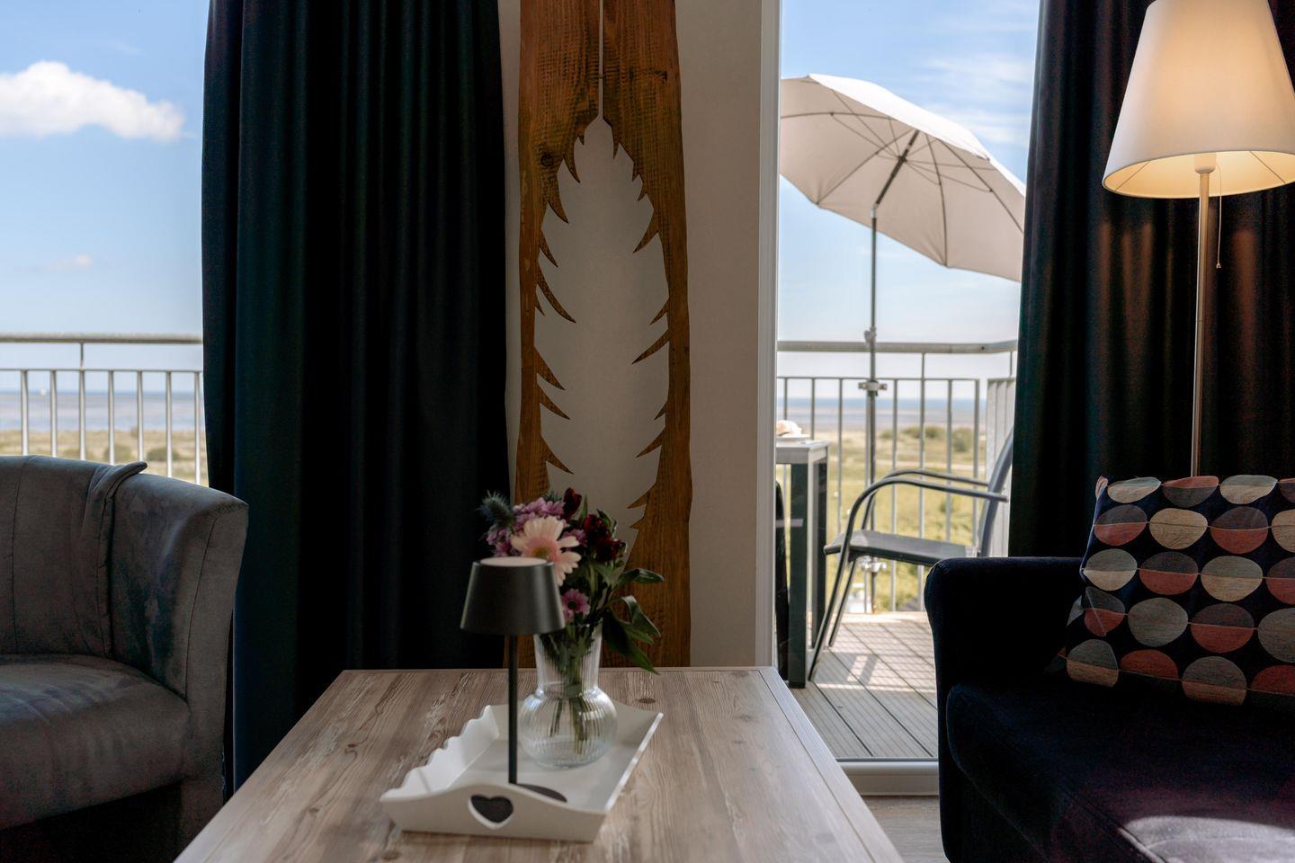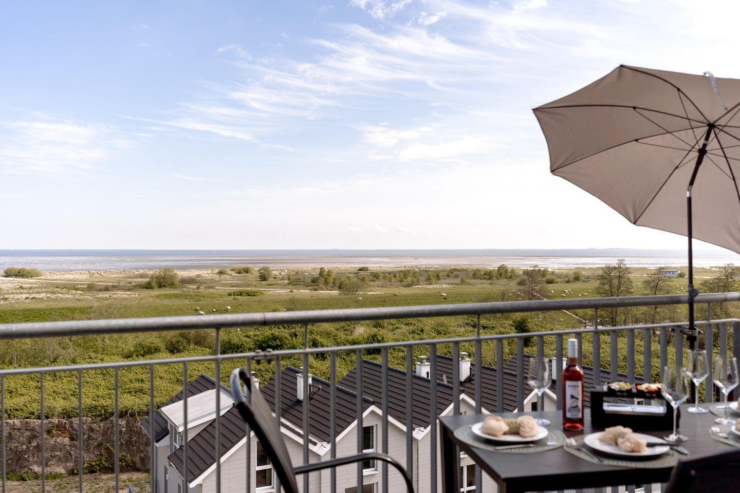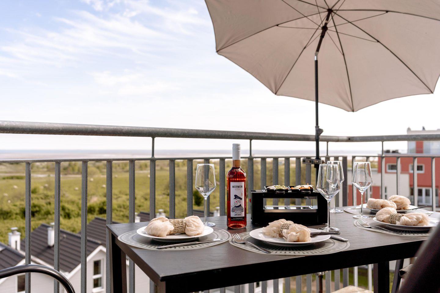 Auf dem großzügigen Balkon erwartet Dich ein Bereich, der zum Verweilen einlädt. Hier kannst Du die frische Seeluft in vollen Zügen genießen, während Du den atemberaubenden Blick auf das weite Meer und die vorbeiziehenden Schiffe bewunderst. Das Kiterevier am Horizont bietet spektakuläre Anblicke und weckt Abenteuerlust. Lass die Seele baumeln.