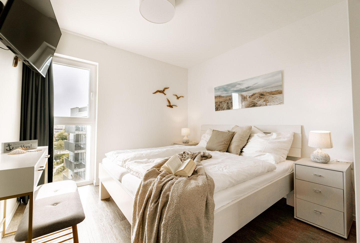 In den zwei Schlafzimmern der Ferienwohnung erwartet Dich Ruhe und Komfort. Die großzügigen Betten und die geräumigen Kleiderschränke bieten genug Platz für einen erholsamen Schlaf und genügend Stauraum für Dein Gepäck. Optional steht Dir ein Wäschepaket zur Verfügung, damit Du Dich um nichts kümmern musst. Für Regentage gibt es eine Playstation 4.