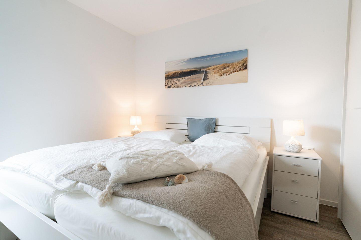 Unsere beiden Schlafzimmer laden zum Träumen ein. Beide Schlafzimmer verfügen über ein großes Bett und einen eigenen Fernseher für gemütliche Abende. Beide Schlafzimmer sind mit großzügigen Kleiderschränken ausgestattet, sodass Ihr genug Platz für Eure Garderobe habt.