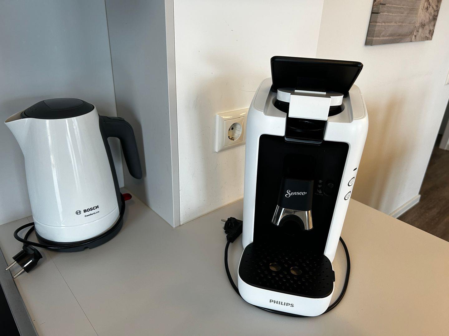 In der voll ausgestatteten Küche könnt Ihr kulinarische Träume wahr werden lassen. Neben den üblichen Geräten wie Herd, Backofen und Spülmaschine bietet die Küche eine hochwertige Küchenmaschine, die das Herz jedes Hobbykochs höherschlagen lässt. Ob frische Nordseekrabben brutzeln oder ein saftiger Apfelkuchen – hier macht das Kochen richtig Spaß!