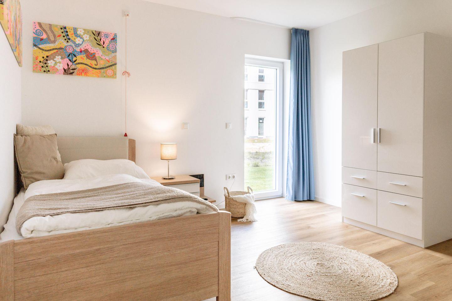 Unsere Zweite Heimat ist nahezu vollständig rollstuhlgerecht gestaltet, mit Ausnahme einer leichten Schwelle an der Eingangstür. Breite Türen und eine durchdachte Raumaufteilung bieten Ihnen Bewegungsfreiheit und Komfort. Direkt vor der Wohnung steht Ihnen ein behindertengerechter Parkplatz zur Verfügung, sodass Sie kurze Wege haben.
