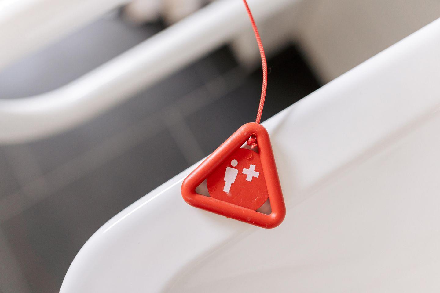 Das Badezimmer ist mit einer ebenen, rollstuhlgerechten Dusche ausgestattet und bietet maximalen Komfort. Ein spezielles Meldesystem informiert Mitreisende optisch und akustisch über eine hilfebedürftige Situation, sodass Sicherheit stets gewährleistet ist.