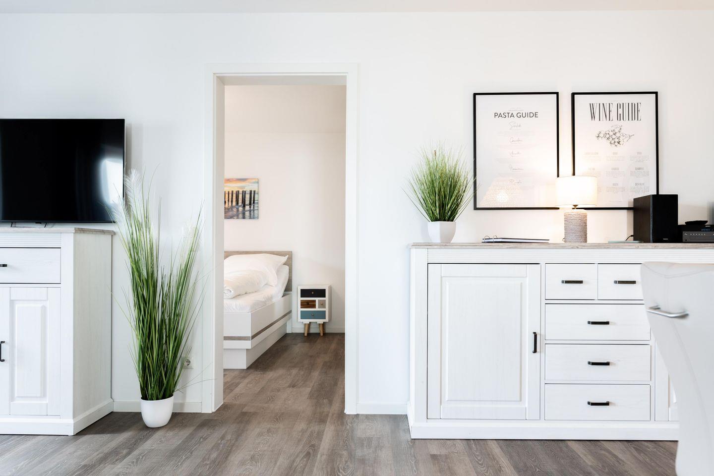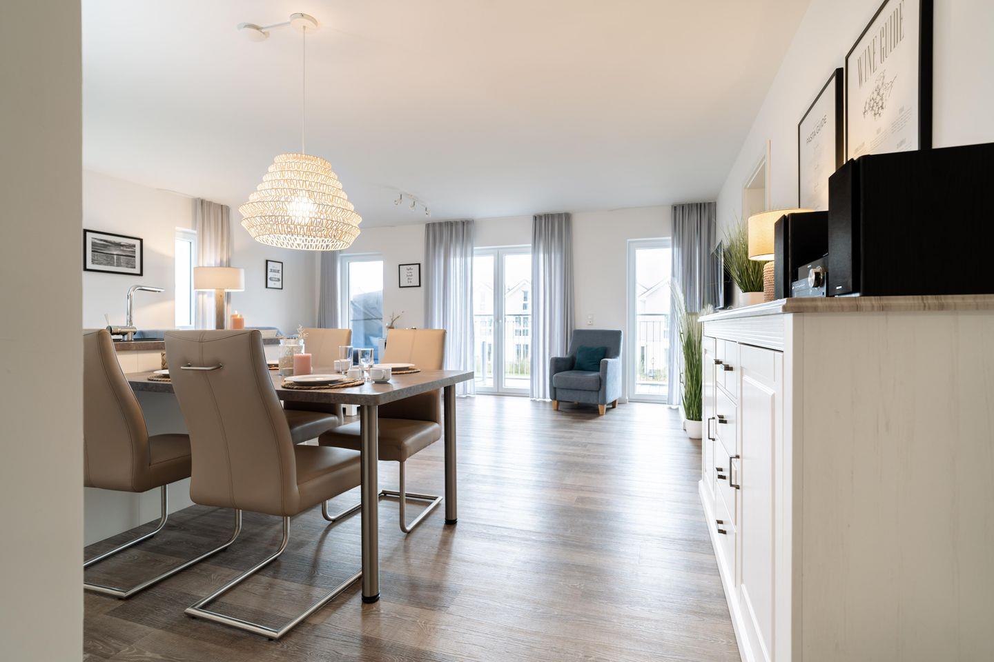 Die "Deichperle" ist mehr als eine Ferienwohnung. Sie ist Euer Rückzugsort nach einem erlebnisreichen Tag. Hier kommen alle auf ihre Kosten, ob bei gemütlichen Filmabenden auf dem Sofa oder gemeinsamen Spieleabenden im Essbereich. Nutzt die private Sauna, um so richtig zu entspannen und lasst den Elektrokamin an kühlen Abenden für wohlige Atmosphäre sorgen.