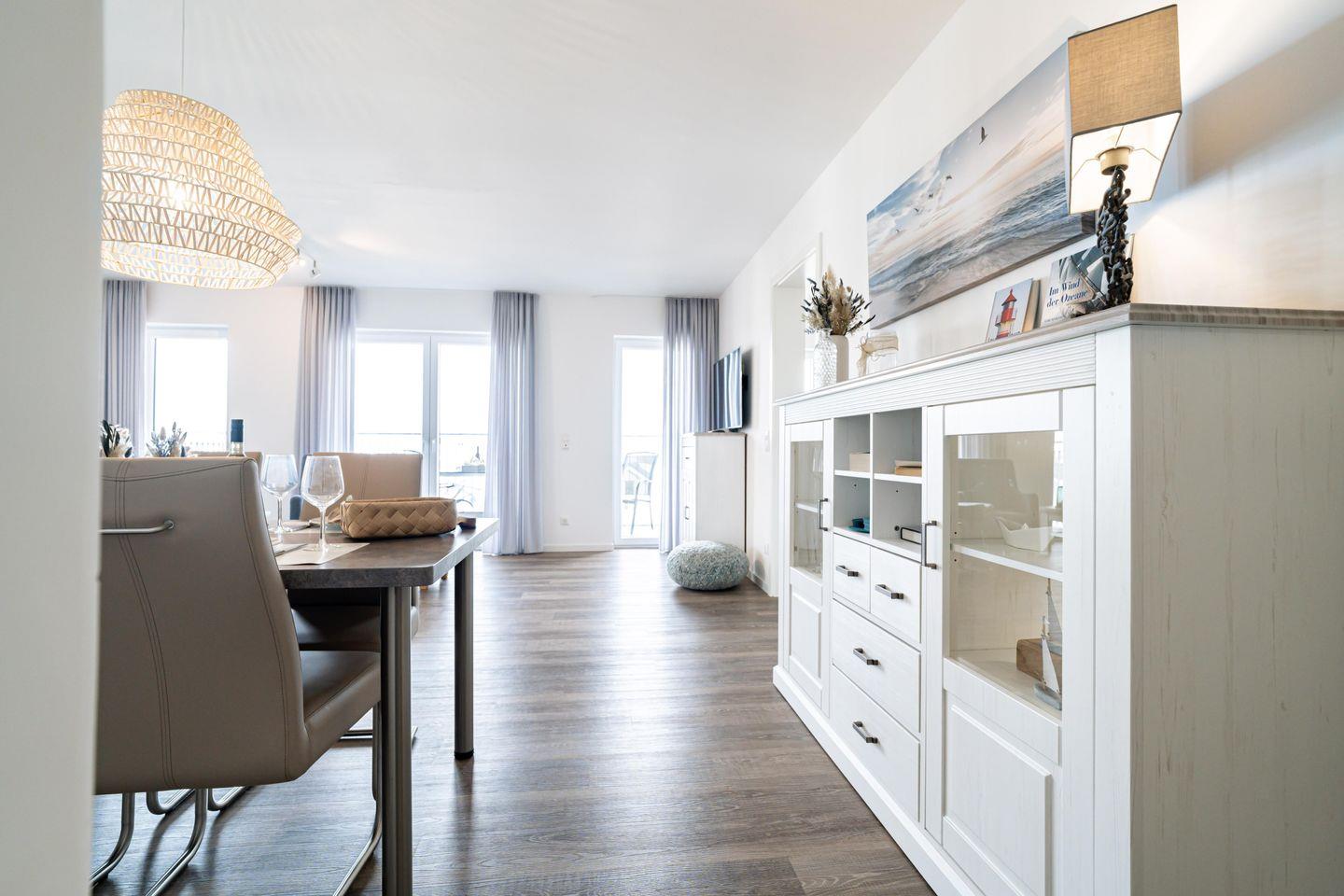Herzlich willkommen in unserer Ferienwohnung „Seaside“! Hier, im dritten Stock, genießt einen unvergleichlichen Blick auf das Meer und die weitläufige Küstenlandschaft von Schillig.
