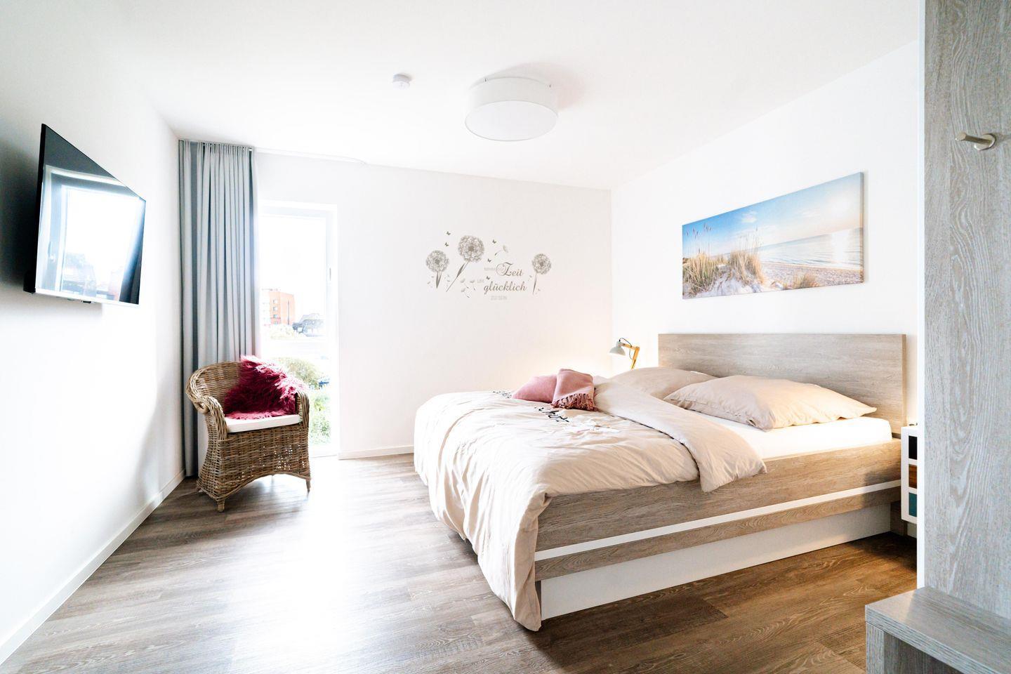 Die „Seabreeze“ befindet sich im 2. Stock und bietet allen Komfort, den Ihr Euch wünscht. Vom großzügigen Balkon aus habt Ihr einen traumhaften Blick auf die Nordsee. Lasst Euch vom Rauschen der Wellen und der frischen Meeresbrise verzaubern, während Ihr im Hängesessel die Seele baumeln lasst.
